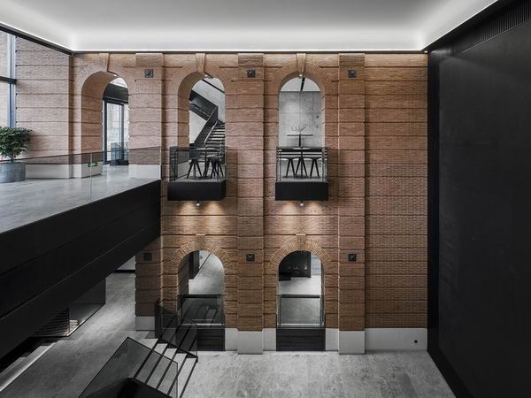 City Walk城市规划展示中心建筑本身亦为苏河湾增添了一个可阅读、可停留的亮点。一楼核心区域沿用了上海总商会的清水红砖墙和拱门元素,简洁工业风的楼梯、黑白灰的色彩搭配、精致的大理石墙面,在历史感中生发出一股新生的力量。