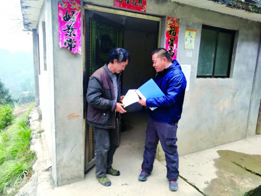 审计署派驻丹寨县扶贫干部(右)到贫困户家中走访了解情况