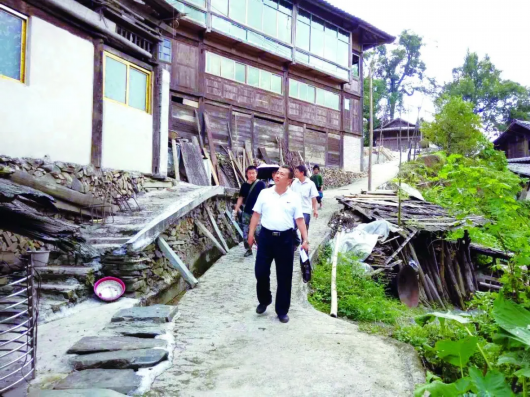 审计署派驻丹寨县扶贫干部(前)到贫困户家走访调研途中