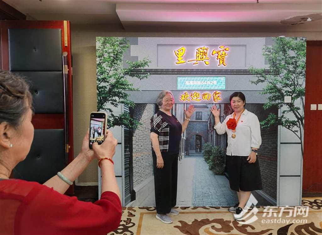 东方网记者黄丽春7月2日报道:一大幅印着“宝兴里”“欢迎回家”和弄堂门头的实景图被制作成拍照背景板,只要告诉工作人员自己家搬迁前的门牌号码,摁一下门铃开关后,那个曾经居住了几十年的地址就显示了出来,许久不见的老邻居老街坊拥抱在一起,拉着居委干部的手聊个不停,摄影师留下了一张张珍贵的“回娘家”照片……今天下午,搬迁到全市各区的“老宝兴”们应邀“回娘家”看看,一起来参加外滩街道庆祝共产党成立100周年暨宝兴居民区“初心日”活动。