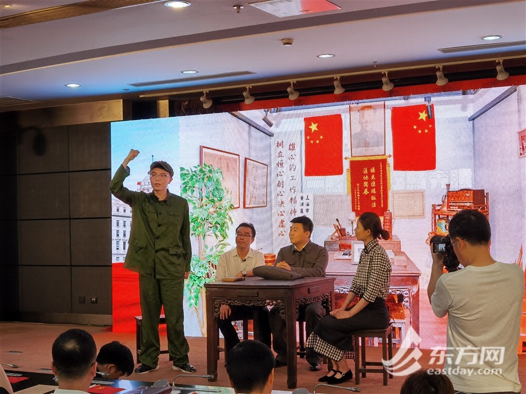 当天的活动上,一出特别的情景剧《申城第一居委的初心》真实再现了宝兴里居民福利委员会的诞生过程。剧中,宝兴居委现任主任顾赟饰演第一任主任单璨宝,现任副书记马骁龙饰演第一任副主任须松青,外滩街道平安办科员王志远饰演当年户籍警屈大勇,外滩街道自治办工作人员潘金伟饰演当年宝兴里居民福利委员会发起人、黄浦区第五军事接管委员会主任王怡白。扎根在社区的年轻人们以这样的方式向前辈致敬,赓续为民服务初心。