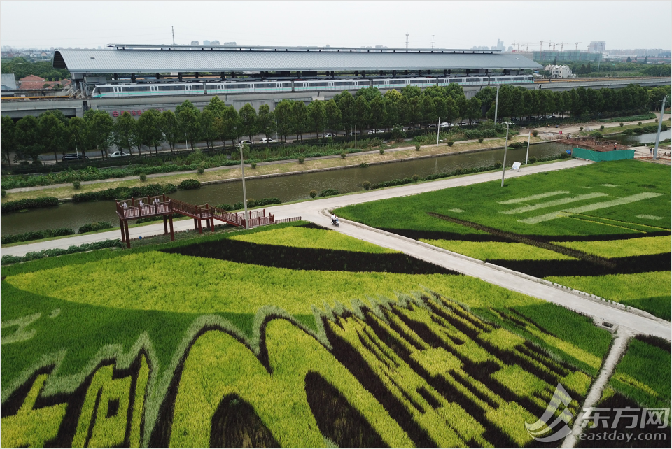 巨幅稻田画毗邻地铁16号线惠南东站。