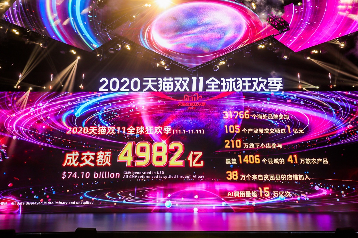2020年11月12日零时,2020年天猫双11最终的交易额,最终定格在4982亿元。从2010年的9.33亿,到2020年的4982亿,10年间,天猫双十一交易额翻了500多倍。