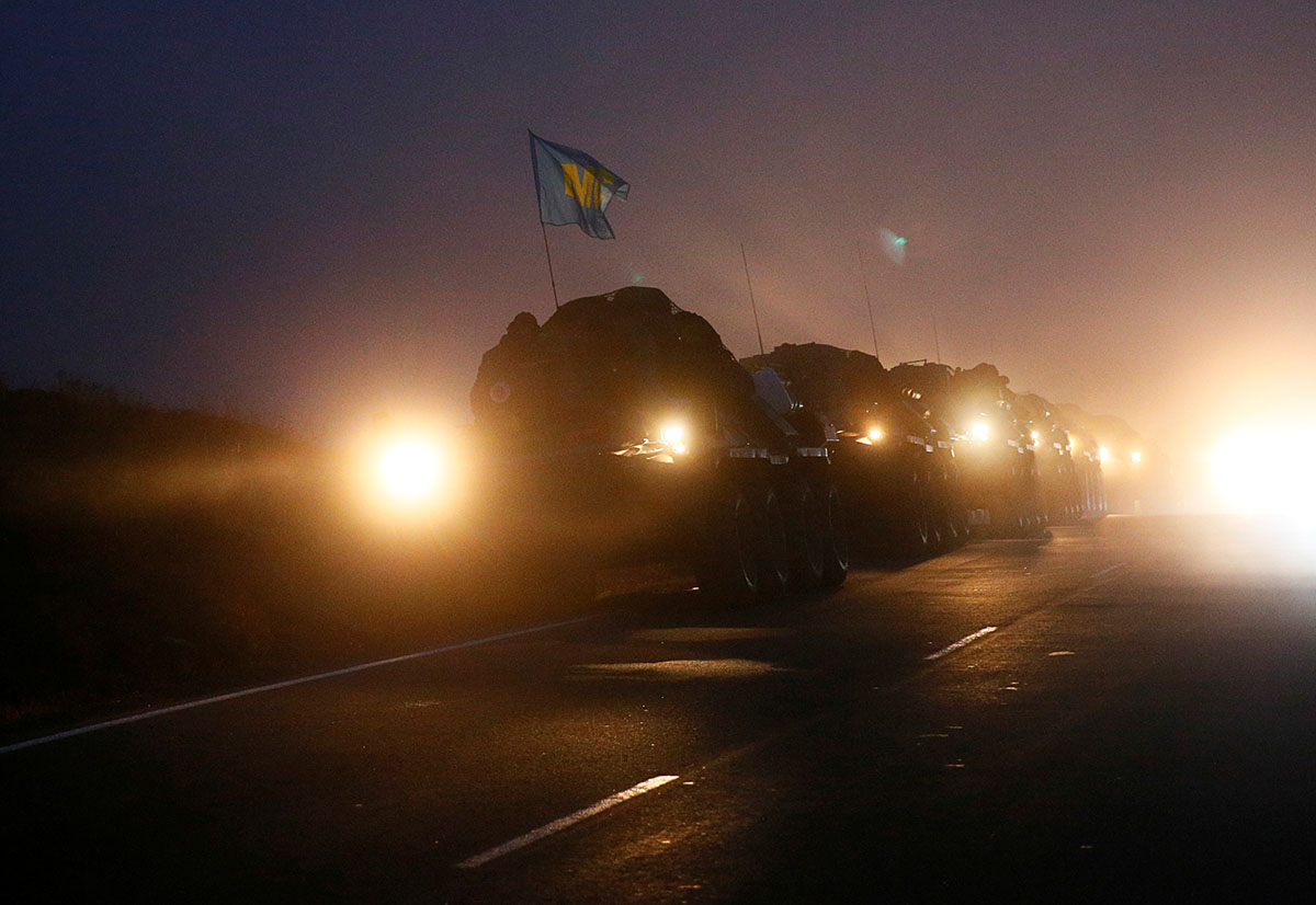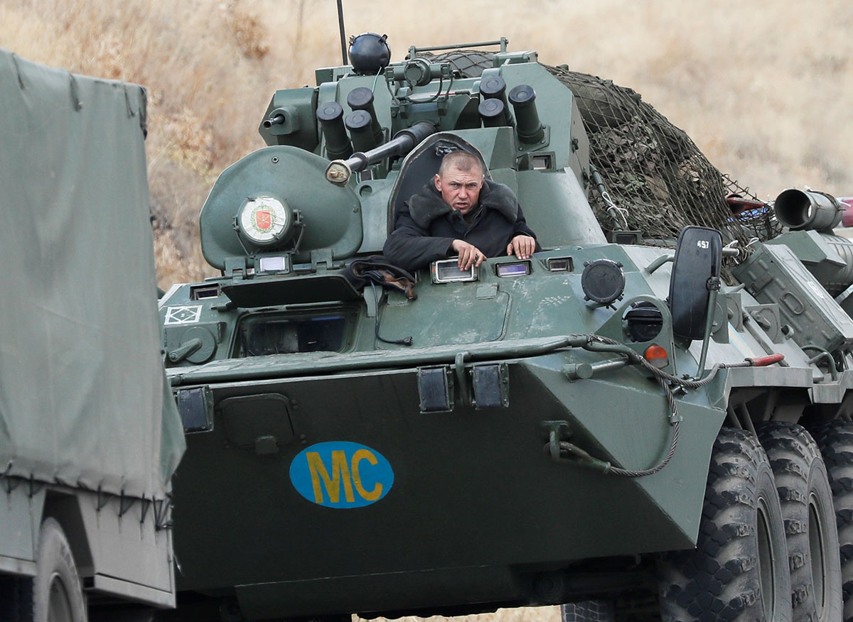 当地时间2020年11月12日,亚美尼亚Yelpin,进入亚美尼亚的俄军维和人员和军车。