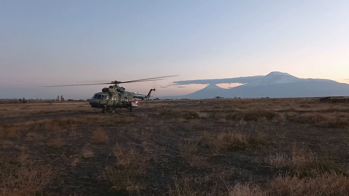 当地时间2020年11月12日,由俄罗斯国防部公布的视频显示,俄罗斯军机在亚美尼亚着陆。
