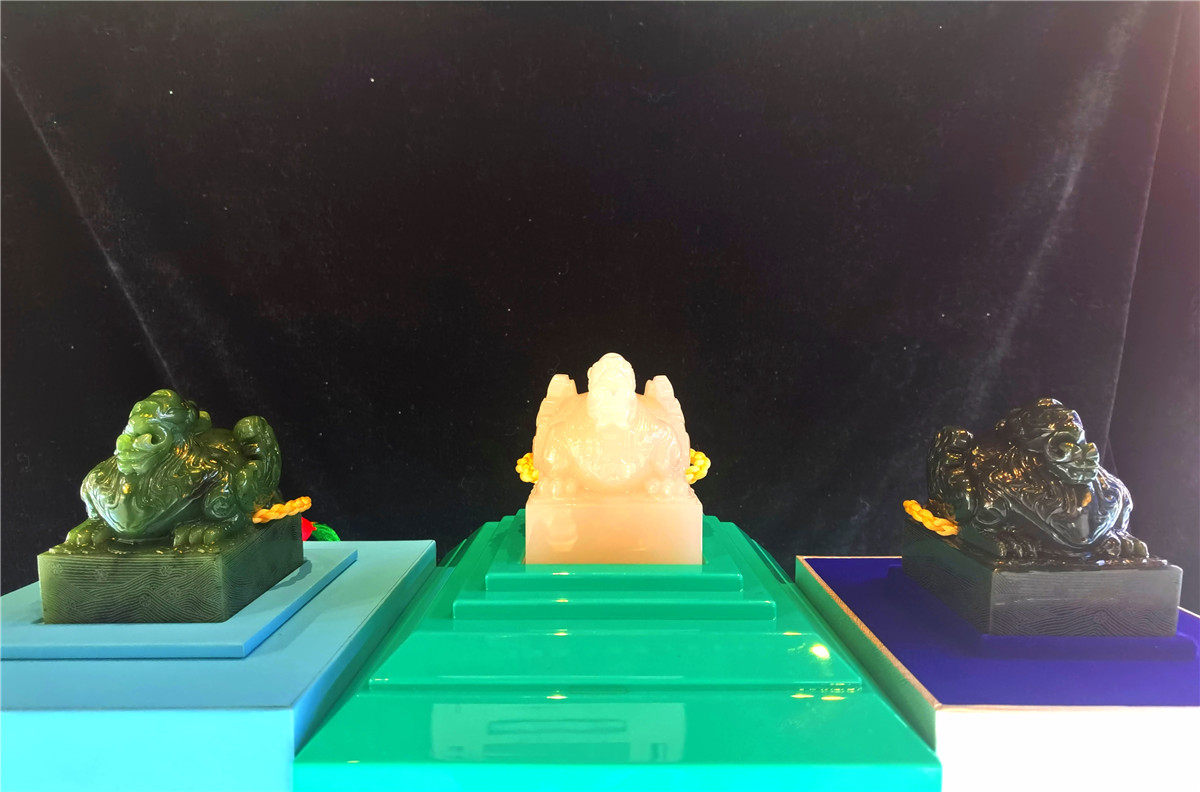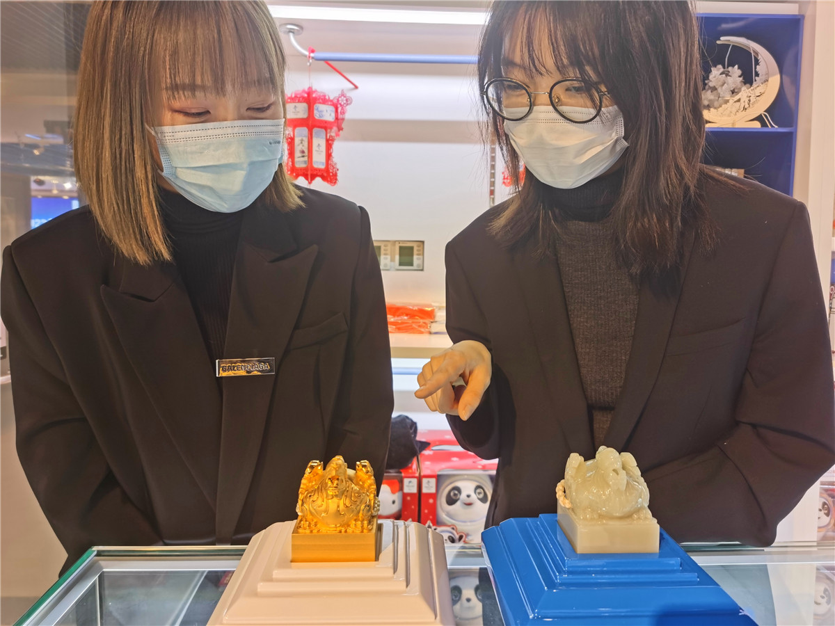 2020年11月14日,北京2022冬奥徽宝系列产品发布会在北京工艺美术博物馆隆重举行。经北京冬奥组委授权,北京冬奥徽宝青玉版、碧玉版、羊脂玉版三款印玺特许商品上市。