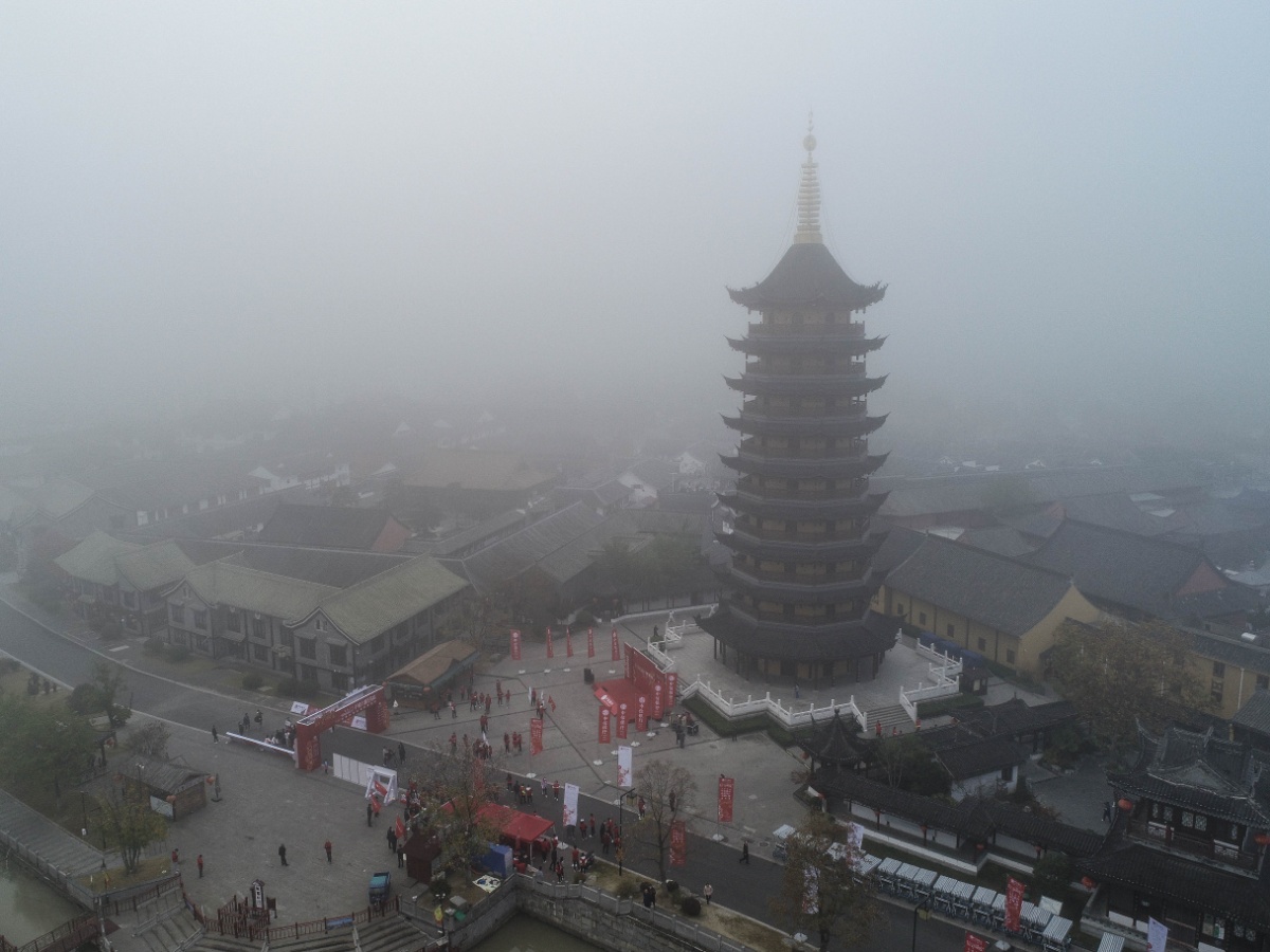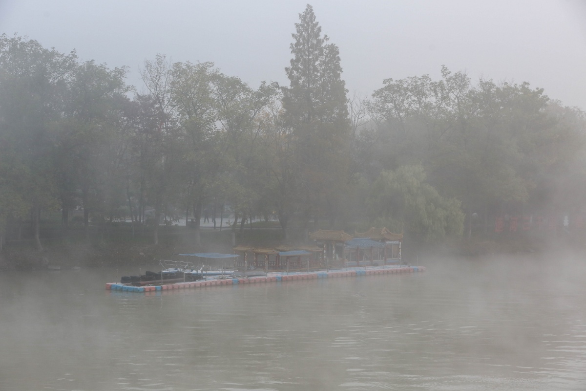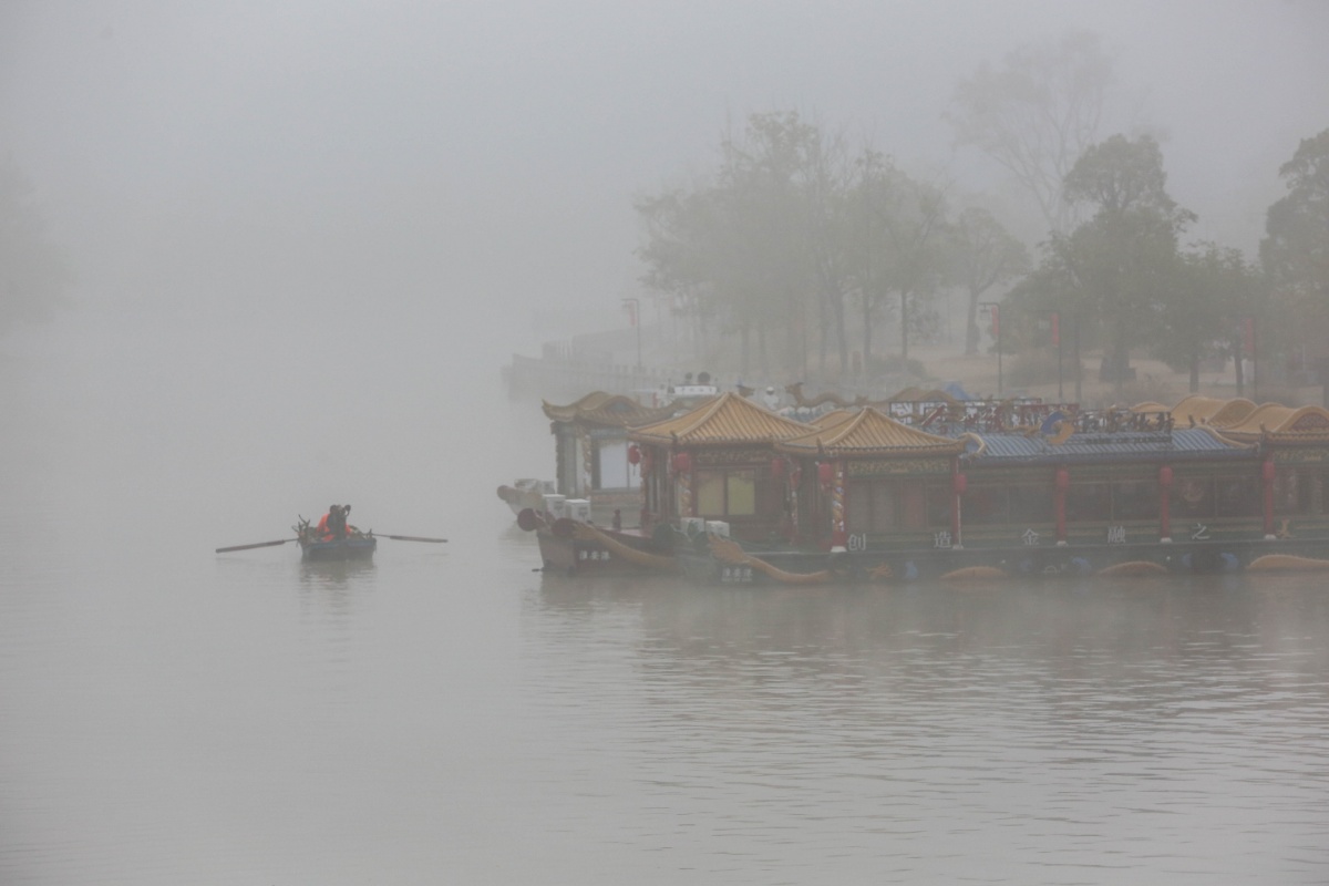 江苏淮安:浓雾锁城 局部能见度小于50米