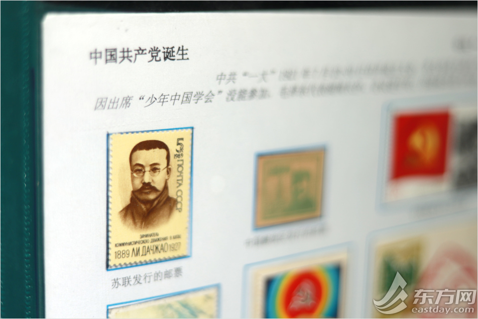 周光复收藏的邮票中,不单单只有中国邮票,还有国外的邮票,比如这枚李大钊邮票就是由苏联发行的。