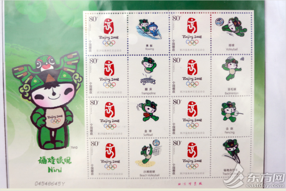 第29届奥林匹克运动会2008年在北京举行,中国邮政发行《吉祥物运动造型集锦》小版张邮票。