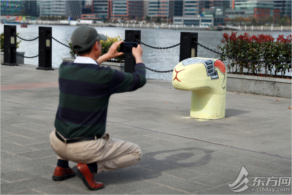 昔日码头缆绳套桩换新装 浦东滨江多了一排萌萌的“铁将军”