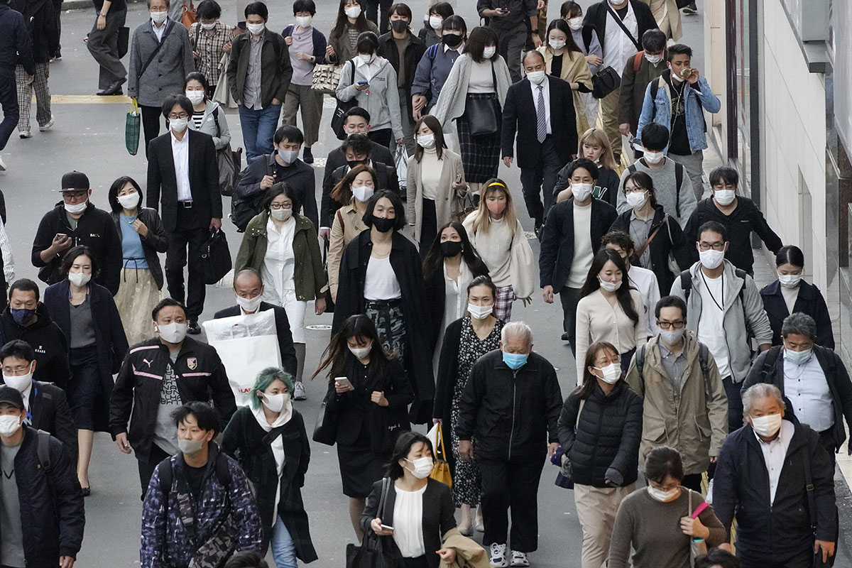 当地时间2020年11月19日,日本东京,日本单日新增新冠确诊病例数再创纪录,东京的人们在生活中佩戴着口罩。