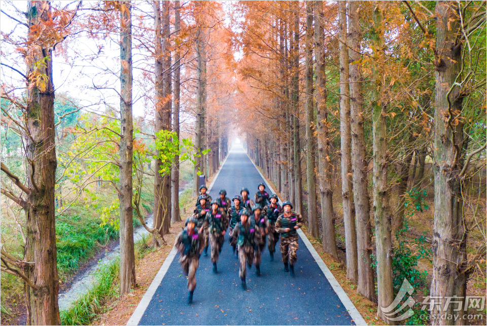 图为特战队员在林间小道快速奔袭。