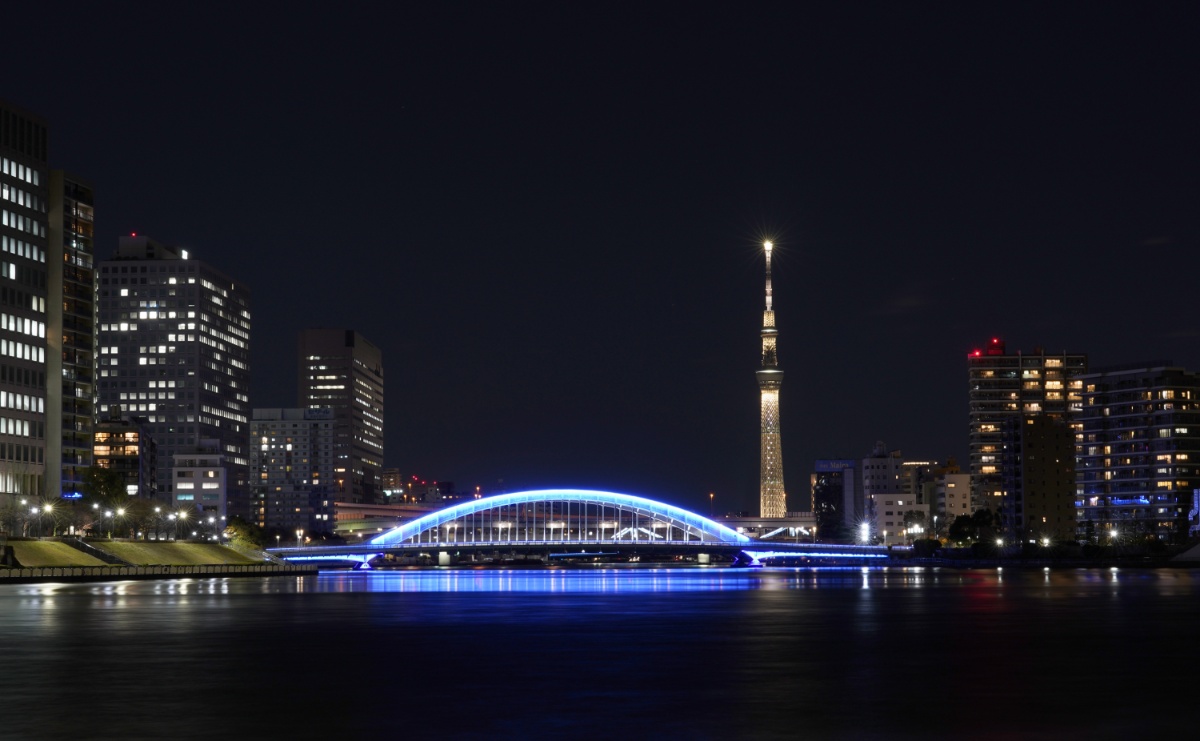 距2021奥运火炬传递重启100天 东京晴空塔点亮“樱花金”色