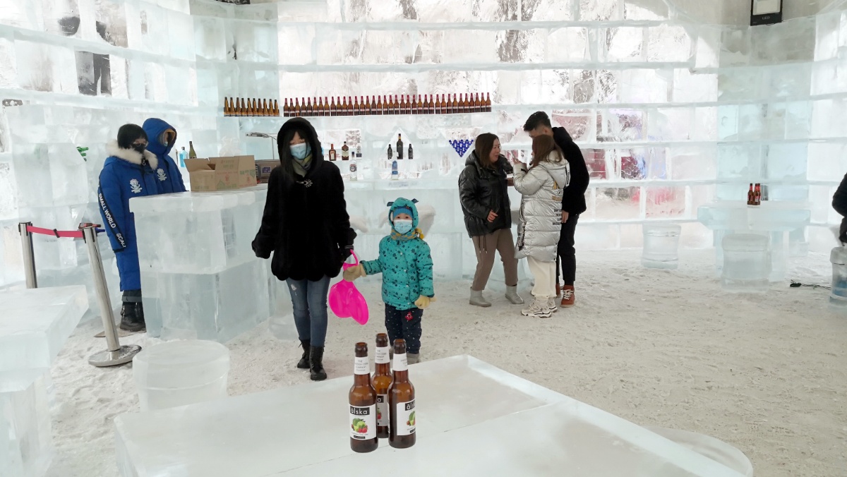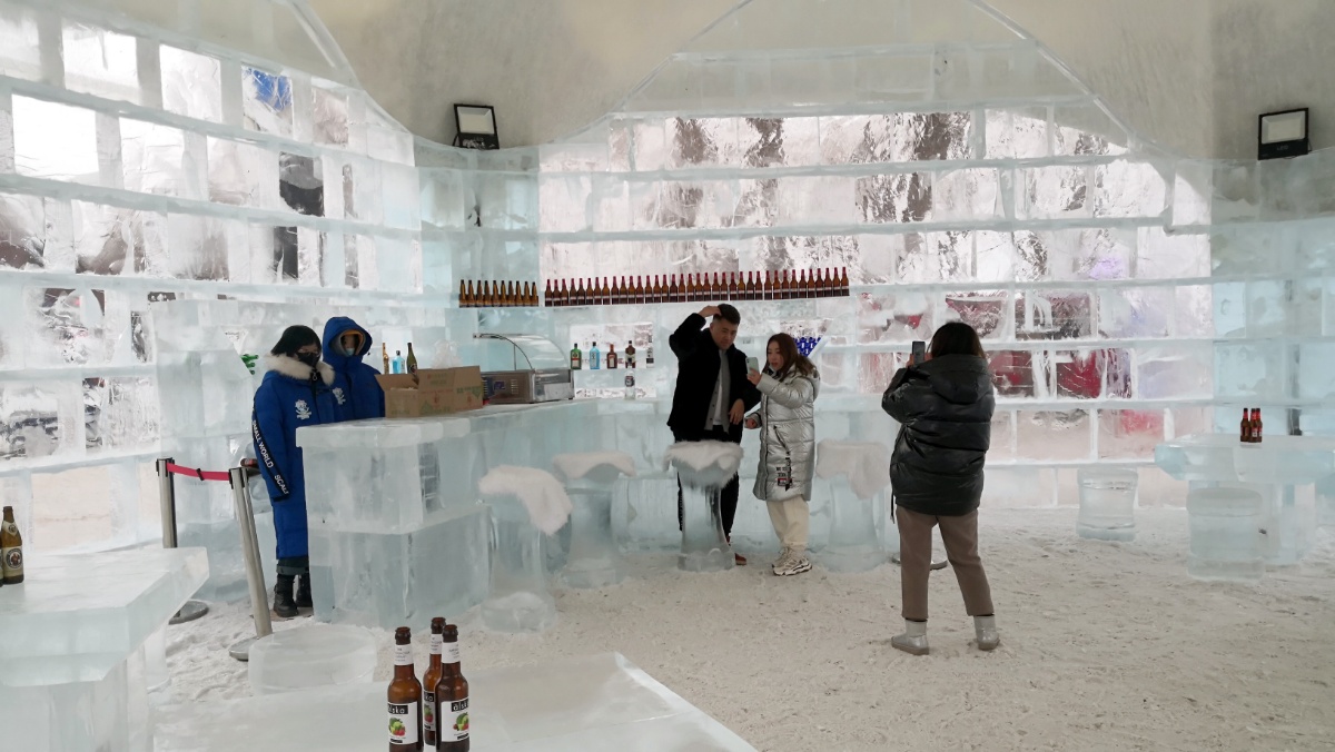 松花江畔冰酒吧开张营业 成游客打卡地