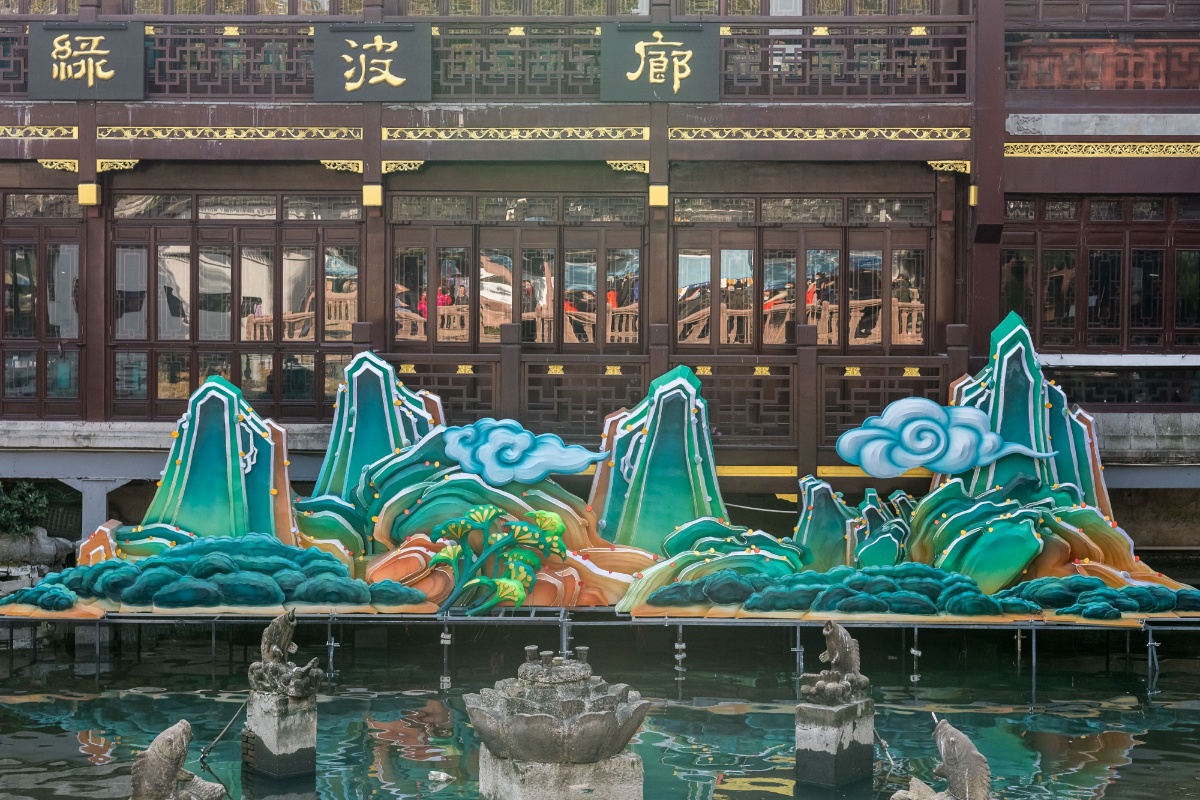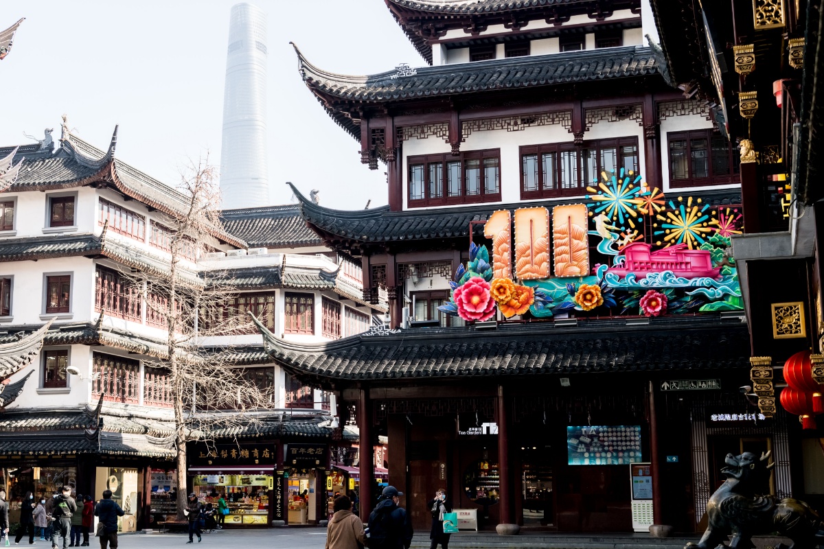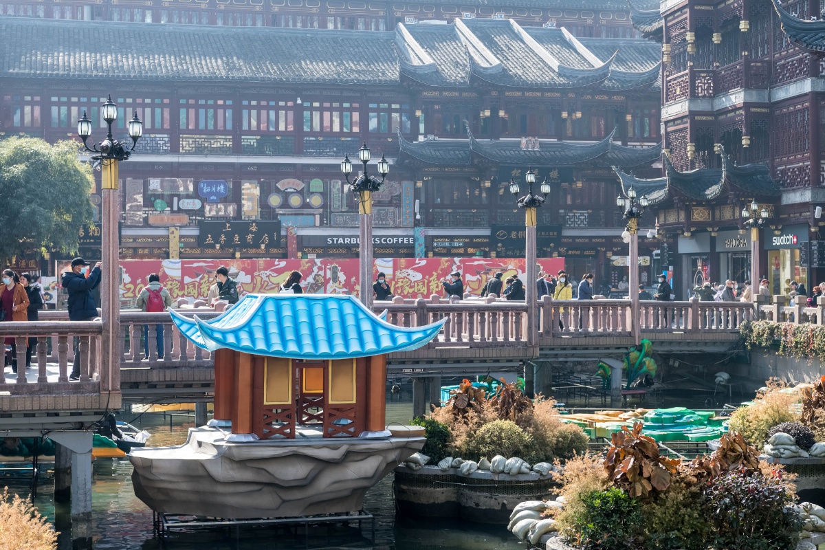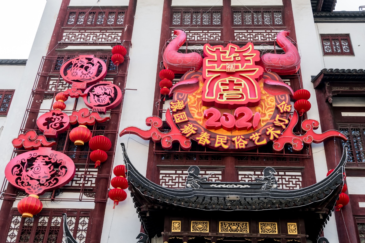 2021上海豫园新春灯会开始搭建 红色元素凸显其中