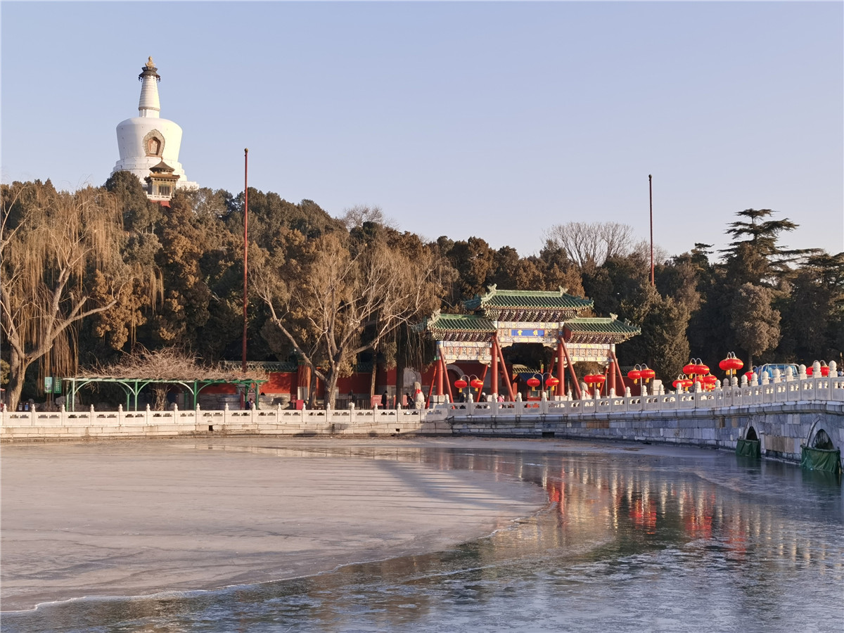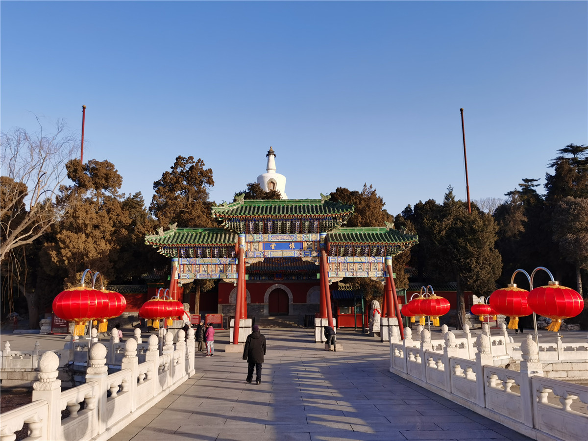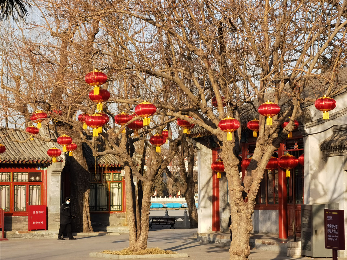北京春节年味渐浓 北海公园大红灯笼高高挂