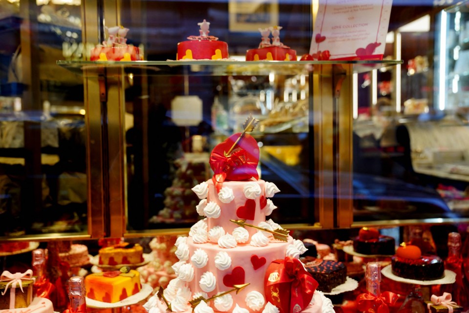 意大利:米兰糕点店摆出精美情人节装饰品