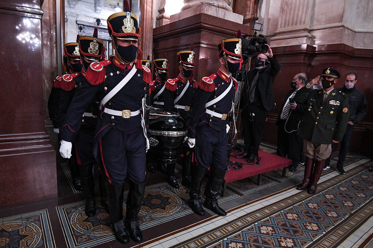 当地时间2021年2月15日,阿根廷布宜诺斯艾利斯,阿根廷现任总统费尔南德斯出席了在阿根廷布宜诺斯艾利斯的国会中心为阿根廷前总统卡洛斯·梅内姆举行的葬礼。