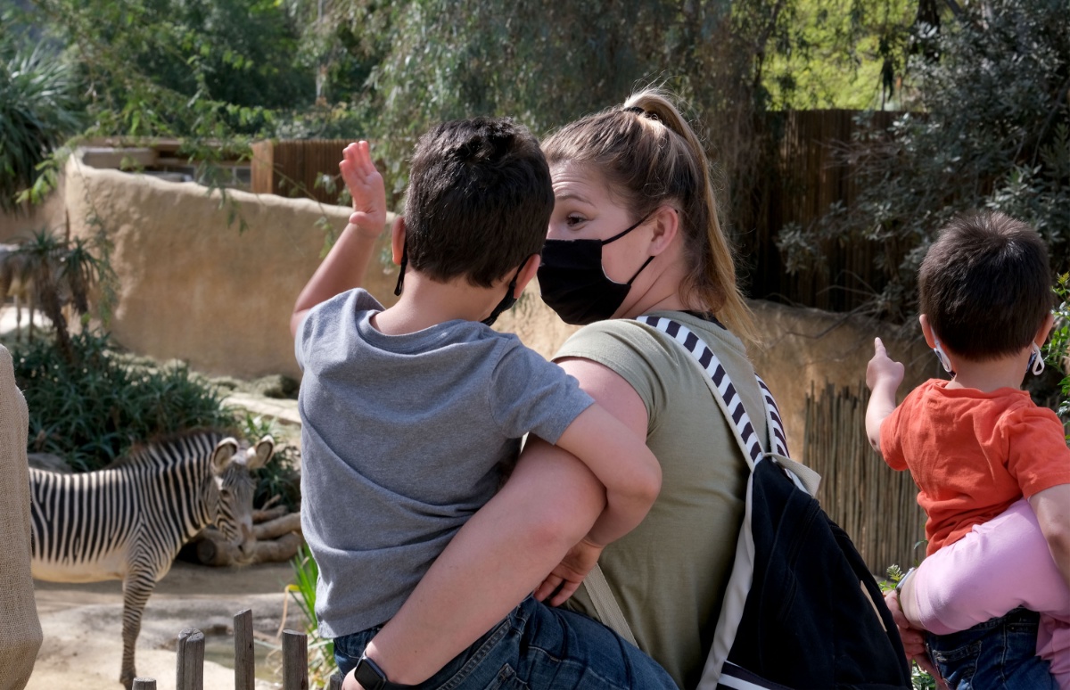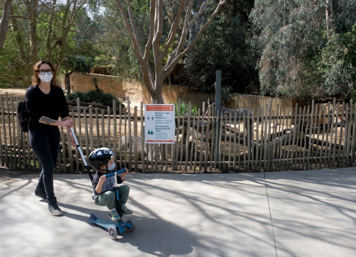 当地时间2021年2月16日,美国加利福尼亚州,洛杉矶动物园重新向公众开放。动物园鼓励游客保持6英尺社交距离,以帮助防止冠状病毒的传播。