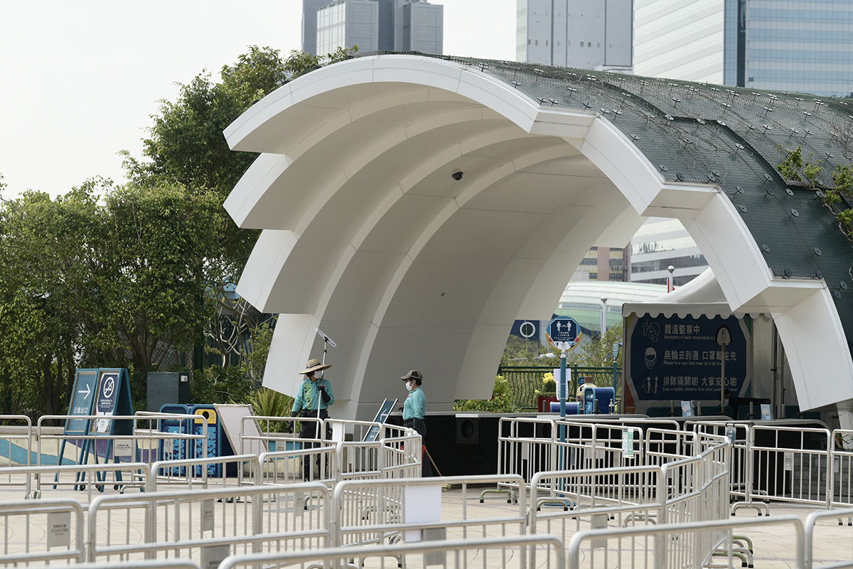2021年2月17日,因应疫情放缓,香港特区政府放宽防疫措施,包括主题公园在内的部分表列处所可有限度恢复运作。2月17日,香港两大主题公园海洋公园和迪士尼乐园分别宣布,将于18日及19日重新开放。 海洋公园表示,所有访客入园前,均须扫描手机应用程式“安心出行”二维码,或登记个人资料,公园员工亦会定期进行新冠病毒检测。图为香港海洋公园,职员为重开作准备。
