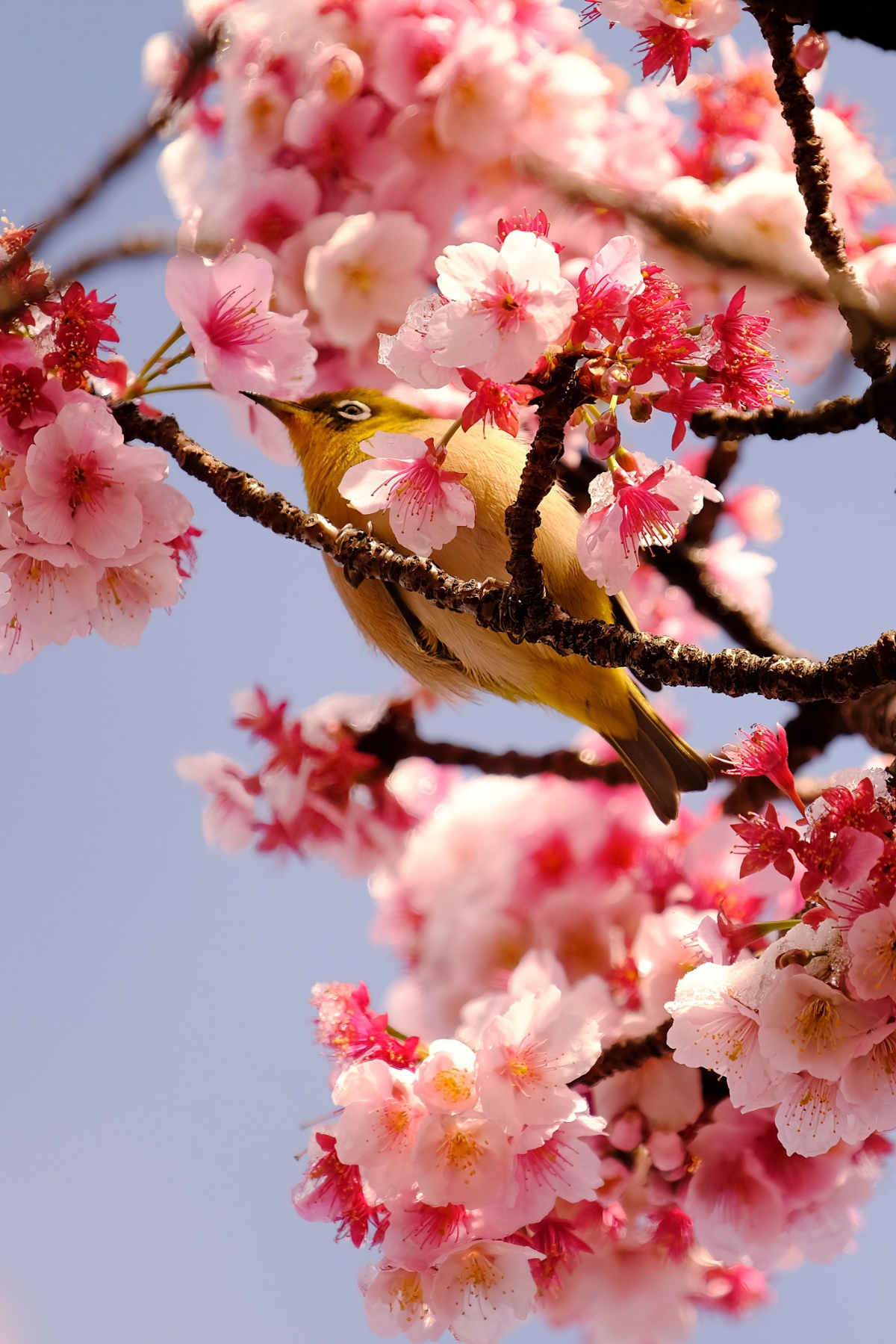 日本早樱盛开 鸟儿枝头嬉戏春意浓
