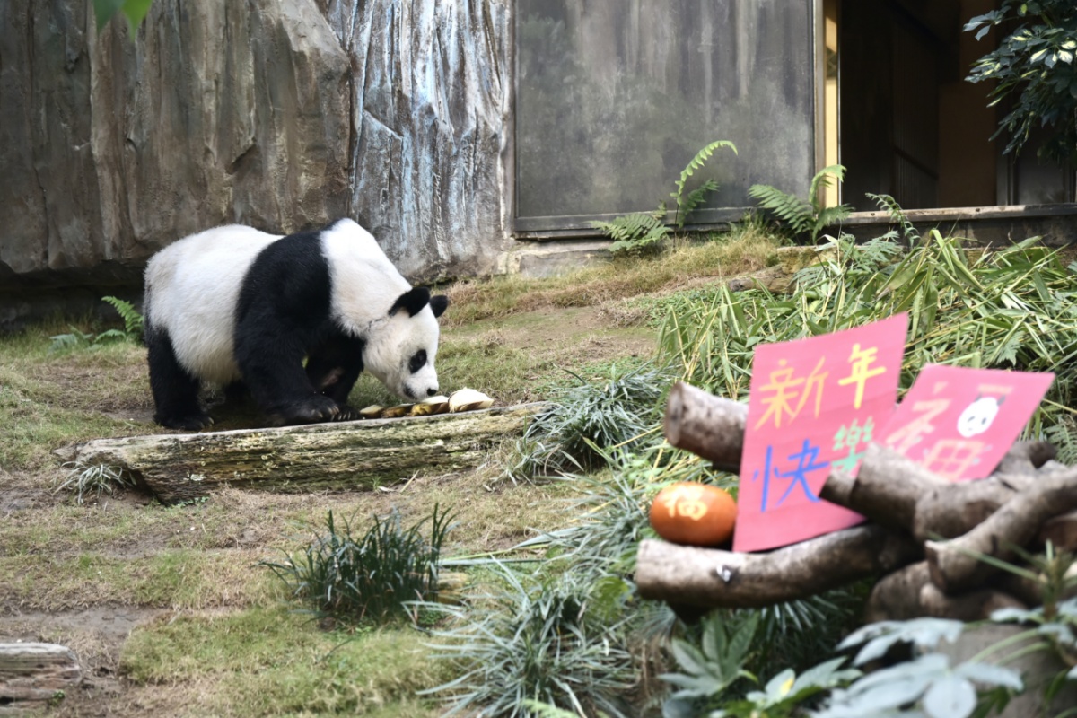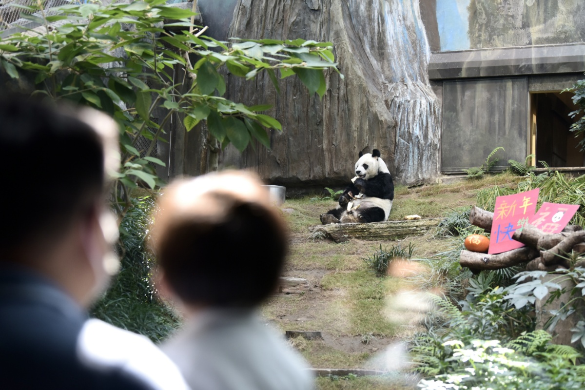 2021年2月18日,香港,海洋公园当日重开,不少市民入园游玩,香港赛马会四川奇珍馆内大熊猫安安为香港市民带来新年祝福,迎接重开。