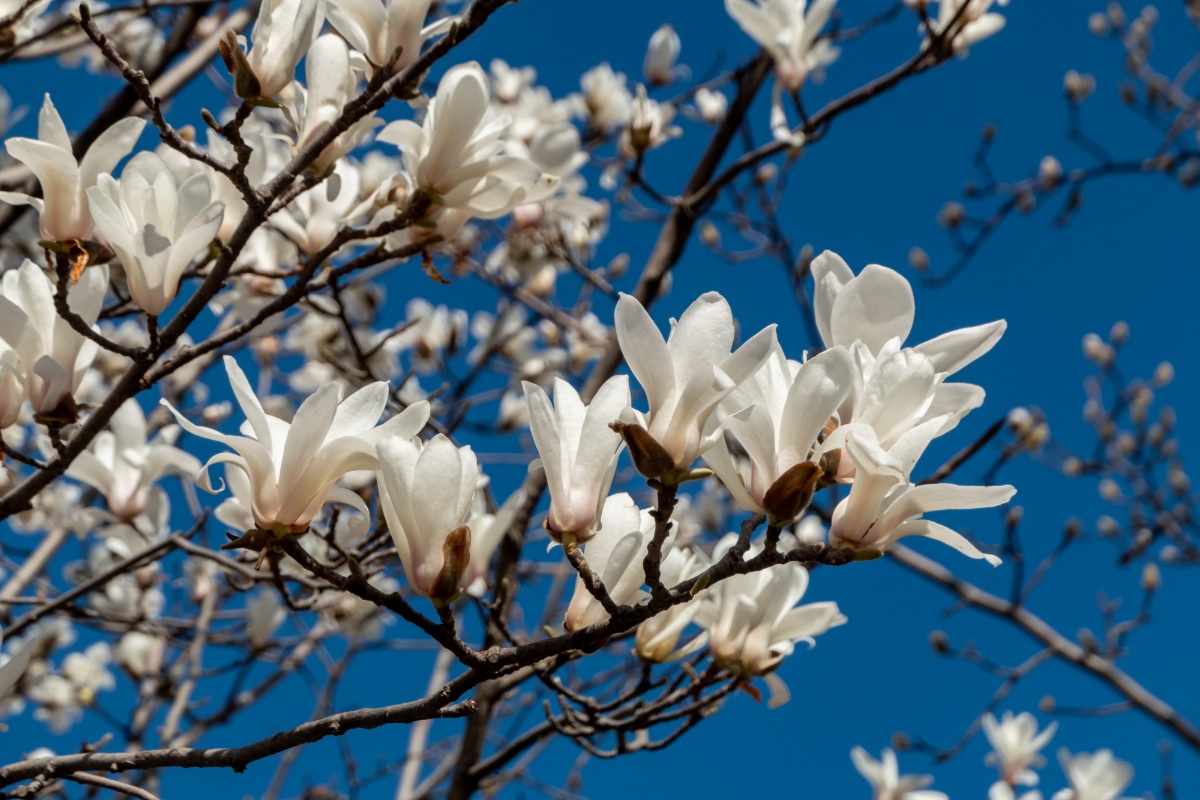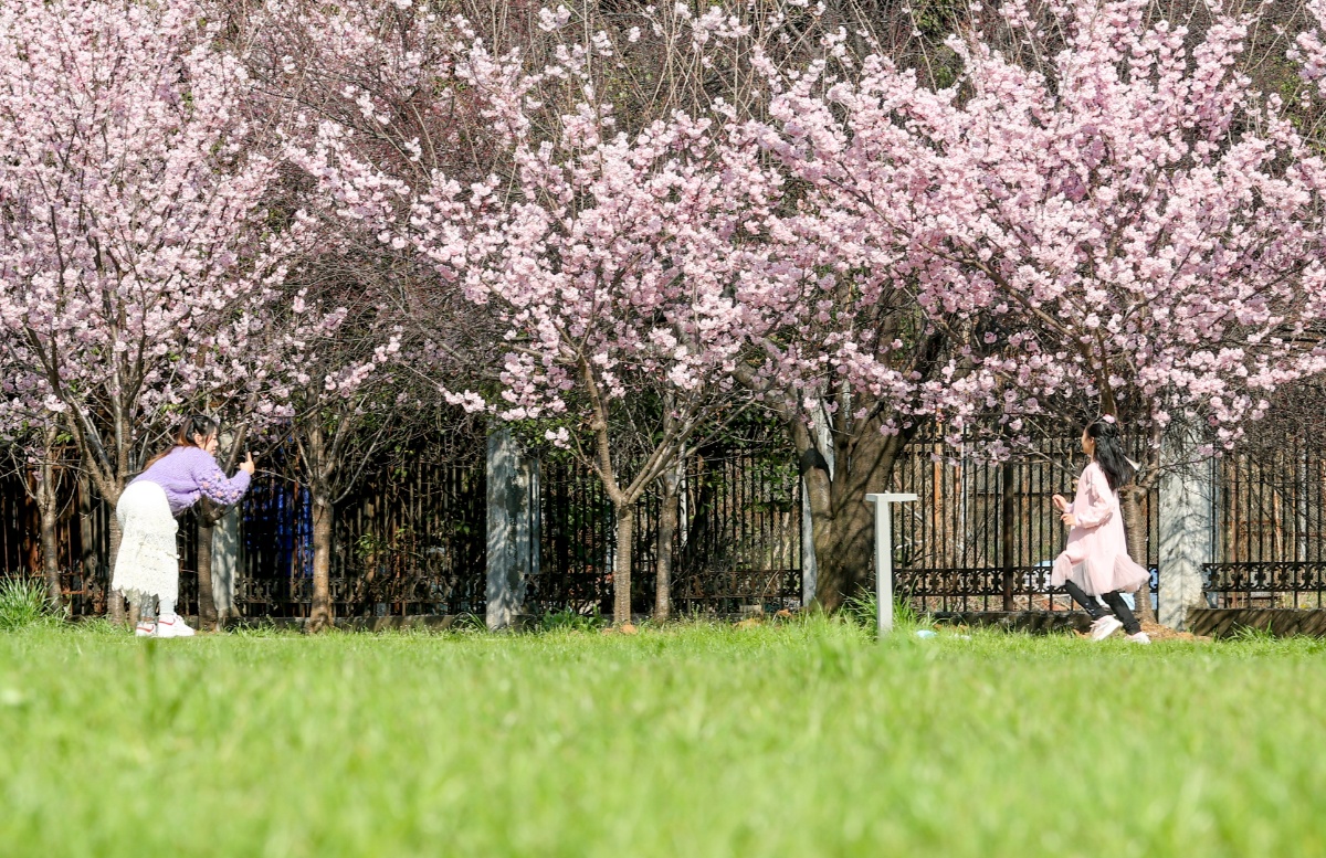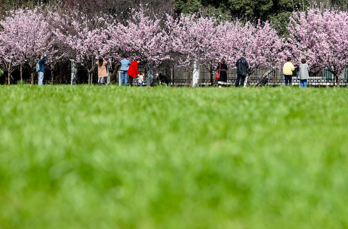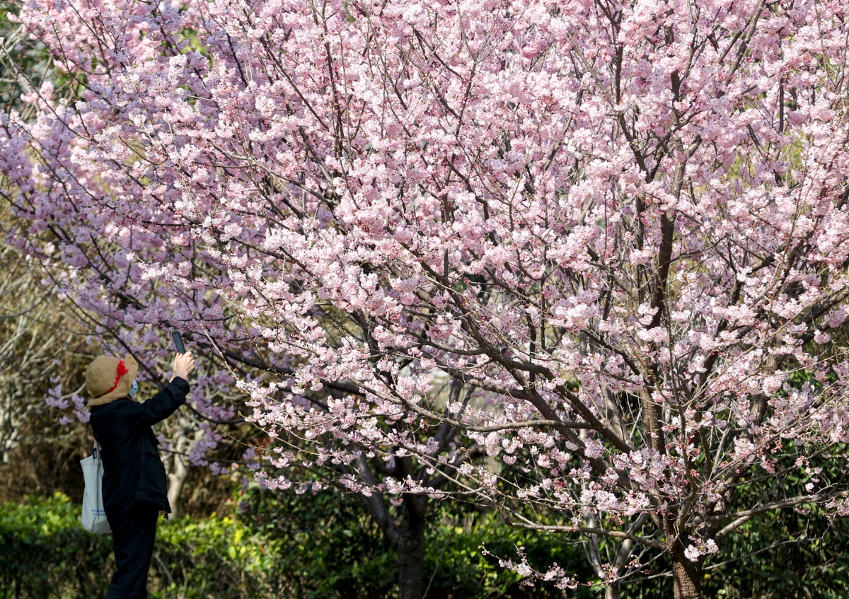 2021年2月19日,湖北武汉,近日,随着气温上升,武汉大学图书馆附近的樱花绽放。