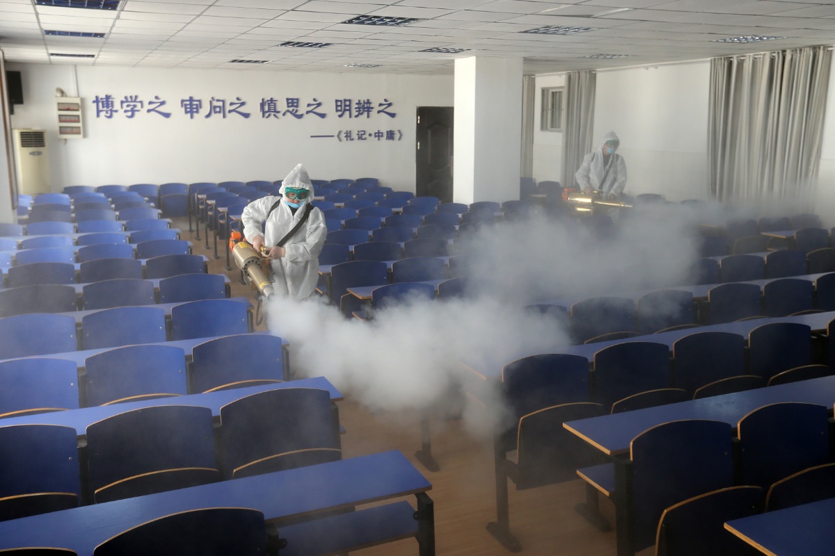 安徽淮北:校园展开消杀活动 为新学期开学做好准备