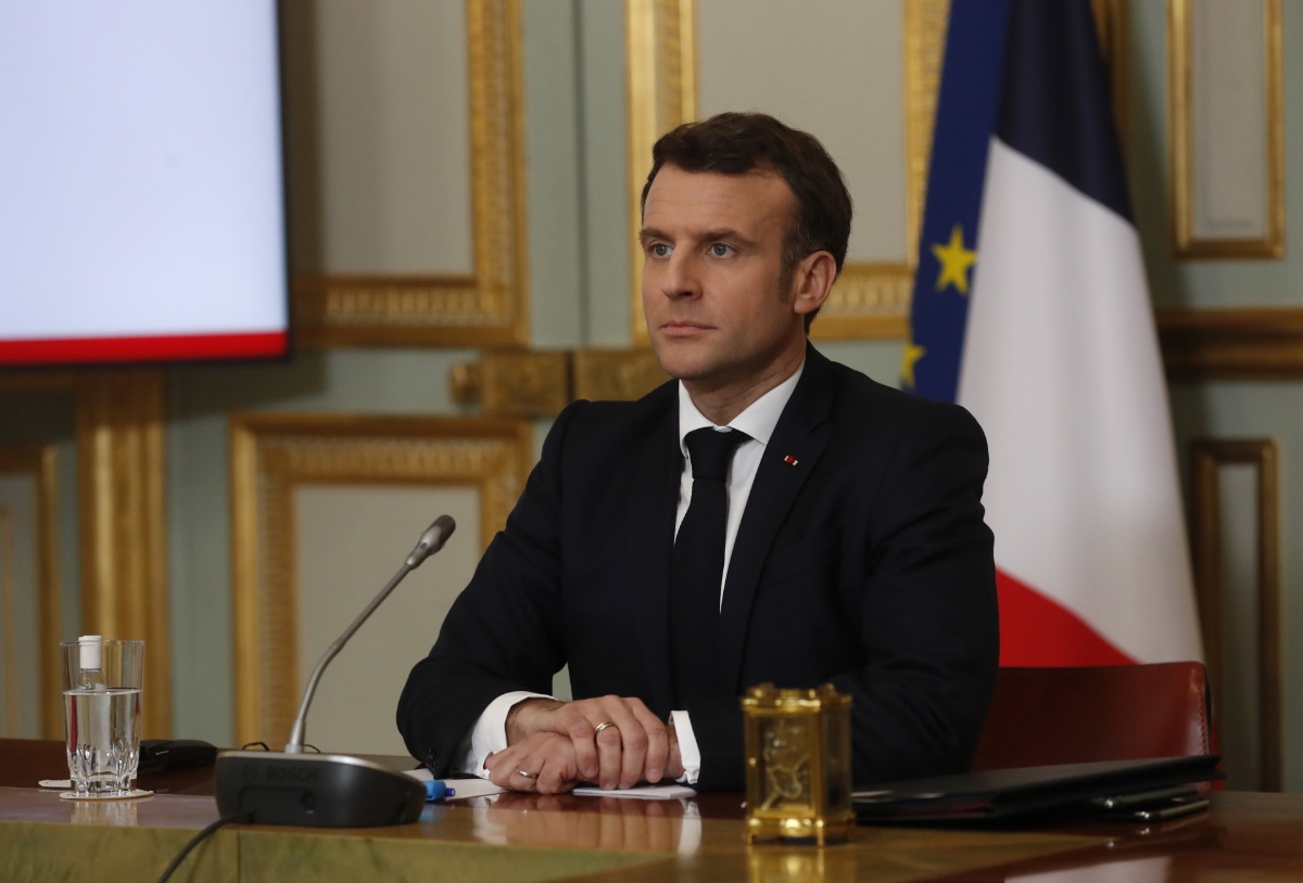 当地时间2021年2月19日,法国巴黎,七国集团领导人召开视频会议,法国总统马克龙出席视频会议。