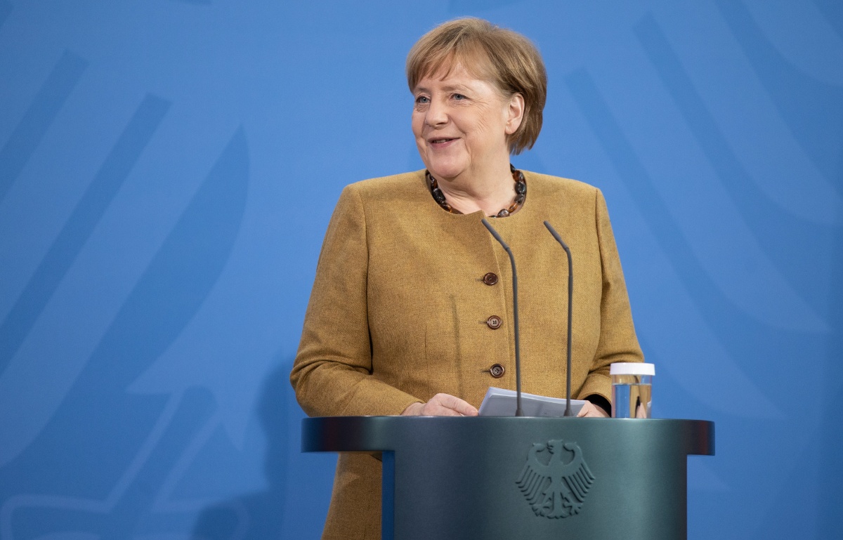 当地时间2021年2月19日,德国柏林,七国集团领导人召开视频会议后,德国总理默克尔出席新闻发布会。