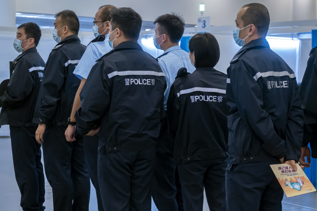 来自警务处、海关、惩教署、消防处、入境事务处及政府飞行服务队等6个纪律部队逾百名人员,当日下午到设于香港中央图书馆的社区疫苗接种中心接种新冠疫苗。