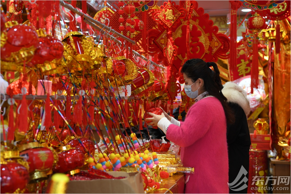 豫园商场一家小商铺里,工作人员正在整理花灯。