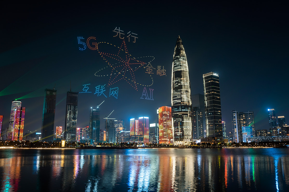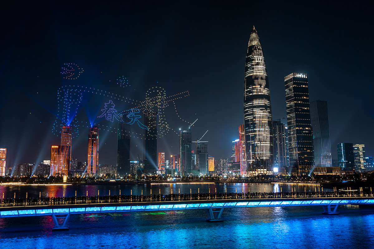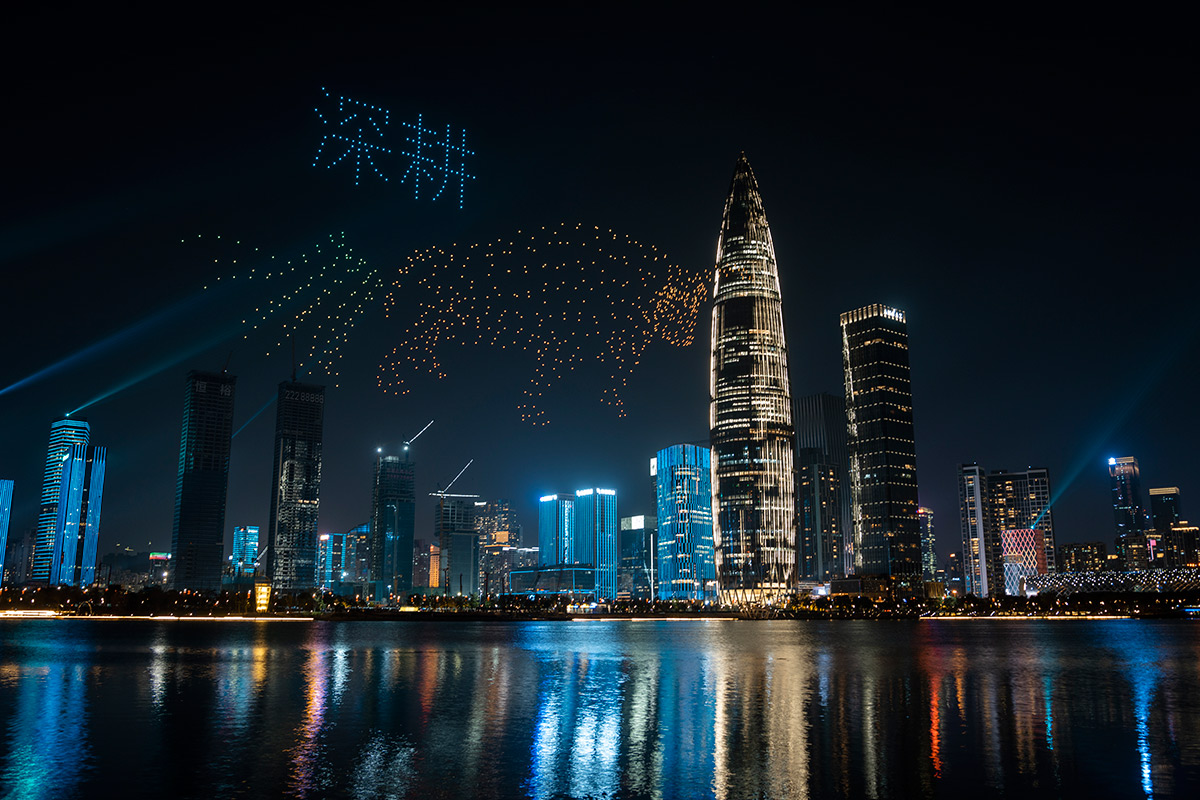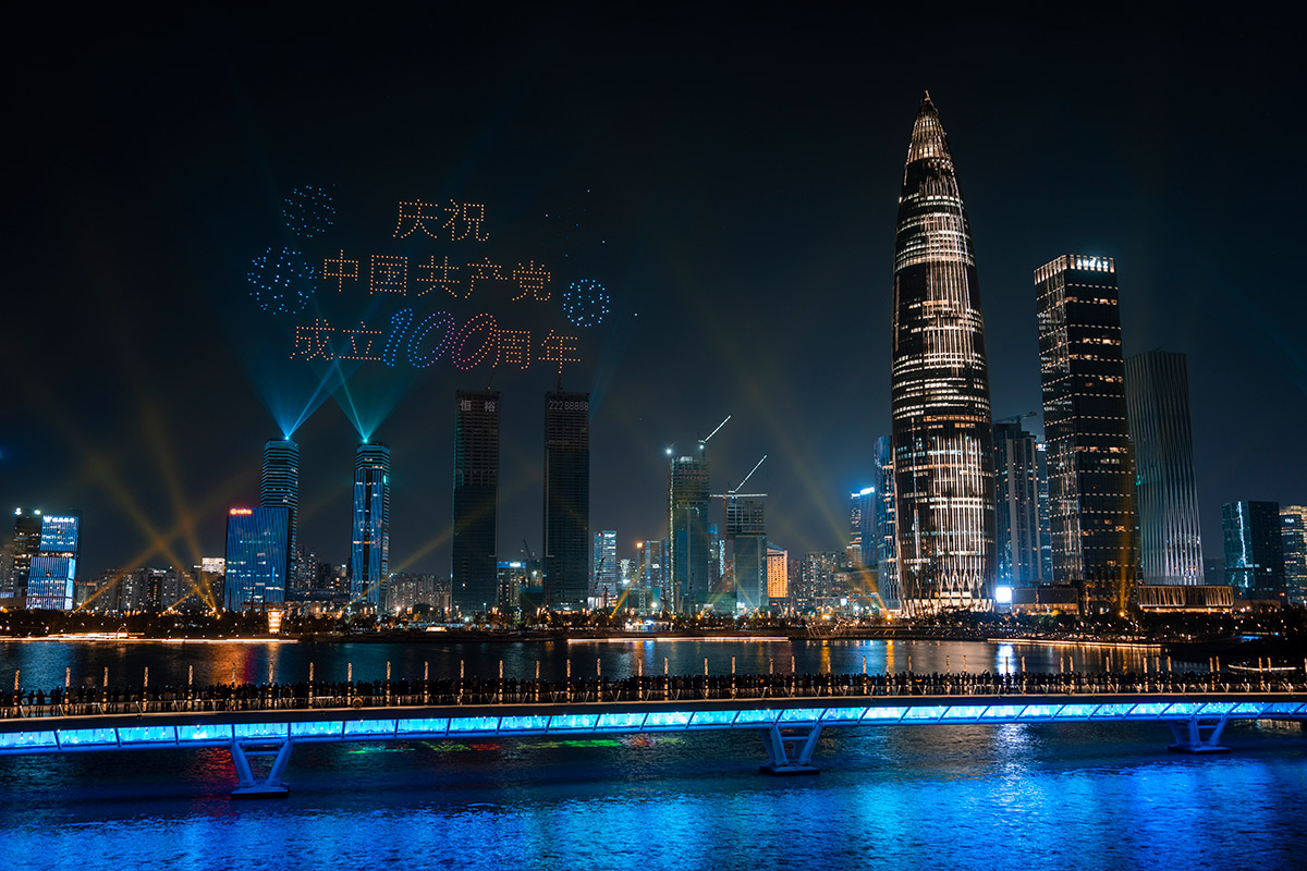 深圳:“中国共产党成立100周年”无人机表演上演