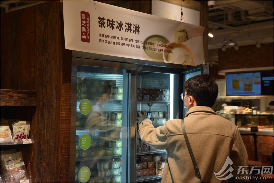 店员告诉记者,茶味限定冰激凌受到年轻顾客的追捧,有些在附近上班的白领会天天来买上一小罐,龙井茶、抹茶、茉莉花茶等口味可以“一周五天不重样”。