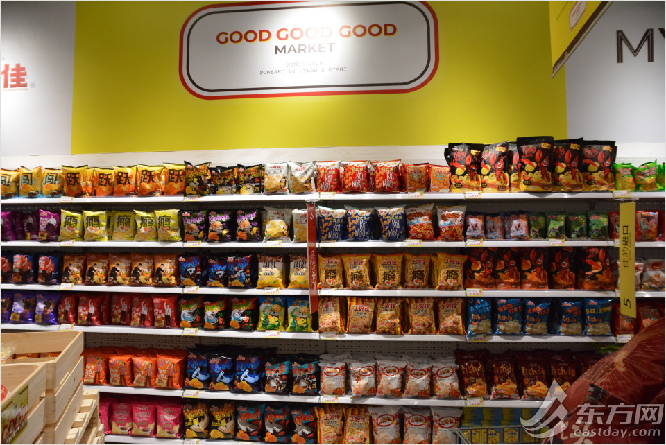 无独有偶,在静安大悦城,一家“快闪店”也迎来热潮。上海老牌零食品牌上好佳与网络新兴店铺MYLAB的联动引得市民们纷纷前来“打卡”。