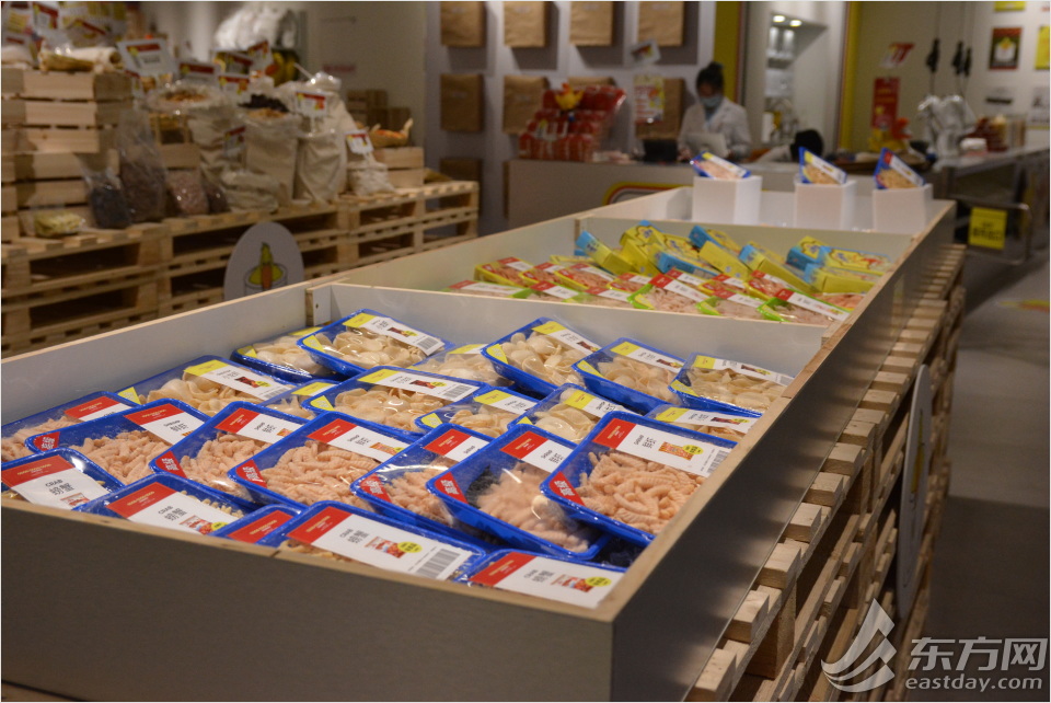 货架上的虾条也被做成了“生鲜产品”的样子。