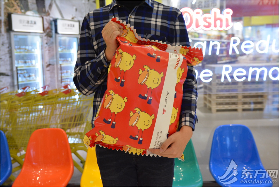整个快闪店以“超市”为主题,货架上都是上好佳为人熟知的产品,但在新包装的“冲击”下,许多顾客表示,“不看上面的字都不认识了!”