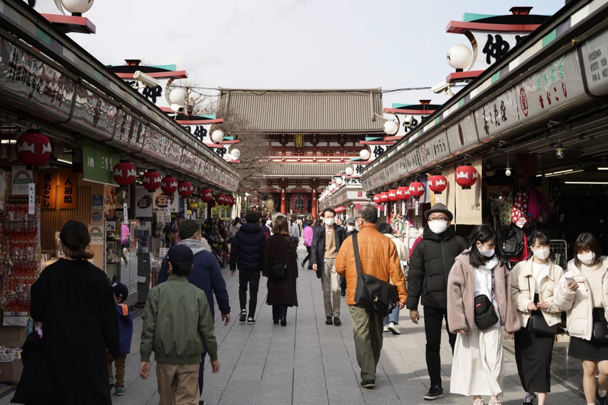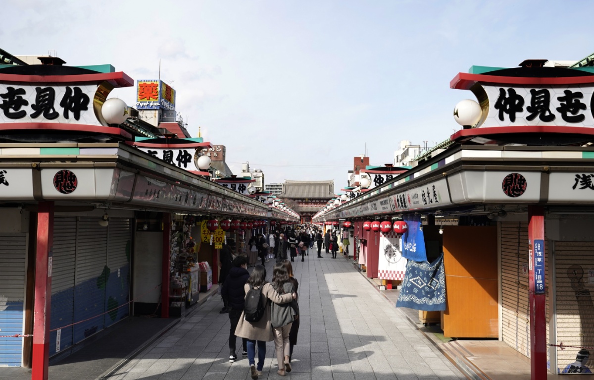 当地时间2021年3月1日,日本东京,民众前往浅草寺。据报道,日本政府计划从3月7日起全面解除紧急事态宣言。