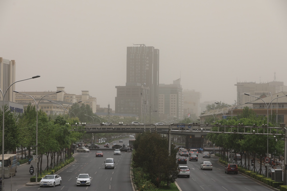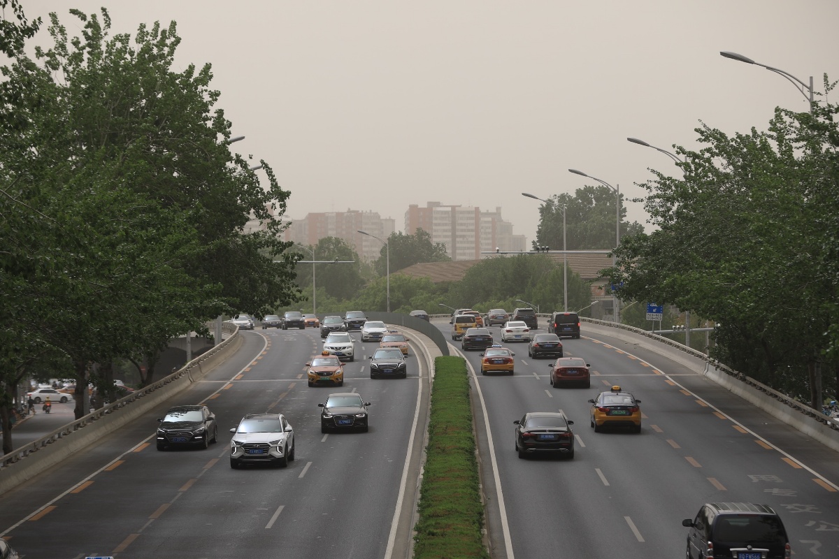 2021年5月6日,北京海淀区,北三环,大楼已隐没在风沙中。