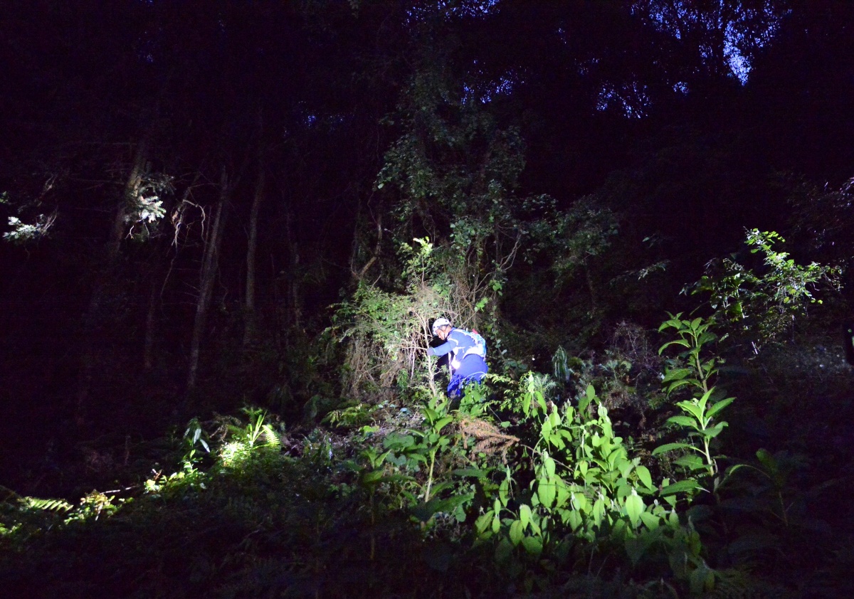 经过联合搜捕,截至目前,出逃的2只已被捕获,其中一只已苏醒。图为搜救人员在山上寻找金钱豹。