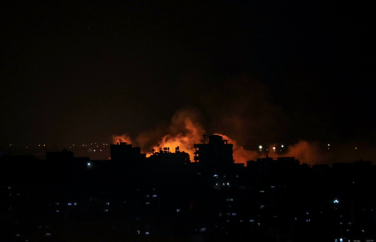 当地时间2021年5月13日,加沙地带,当地遭以色列空袭,现场浓烟滚滚。