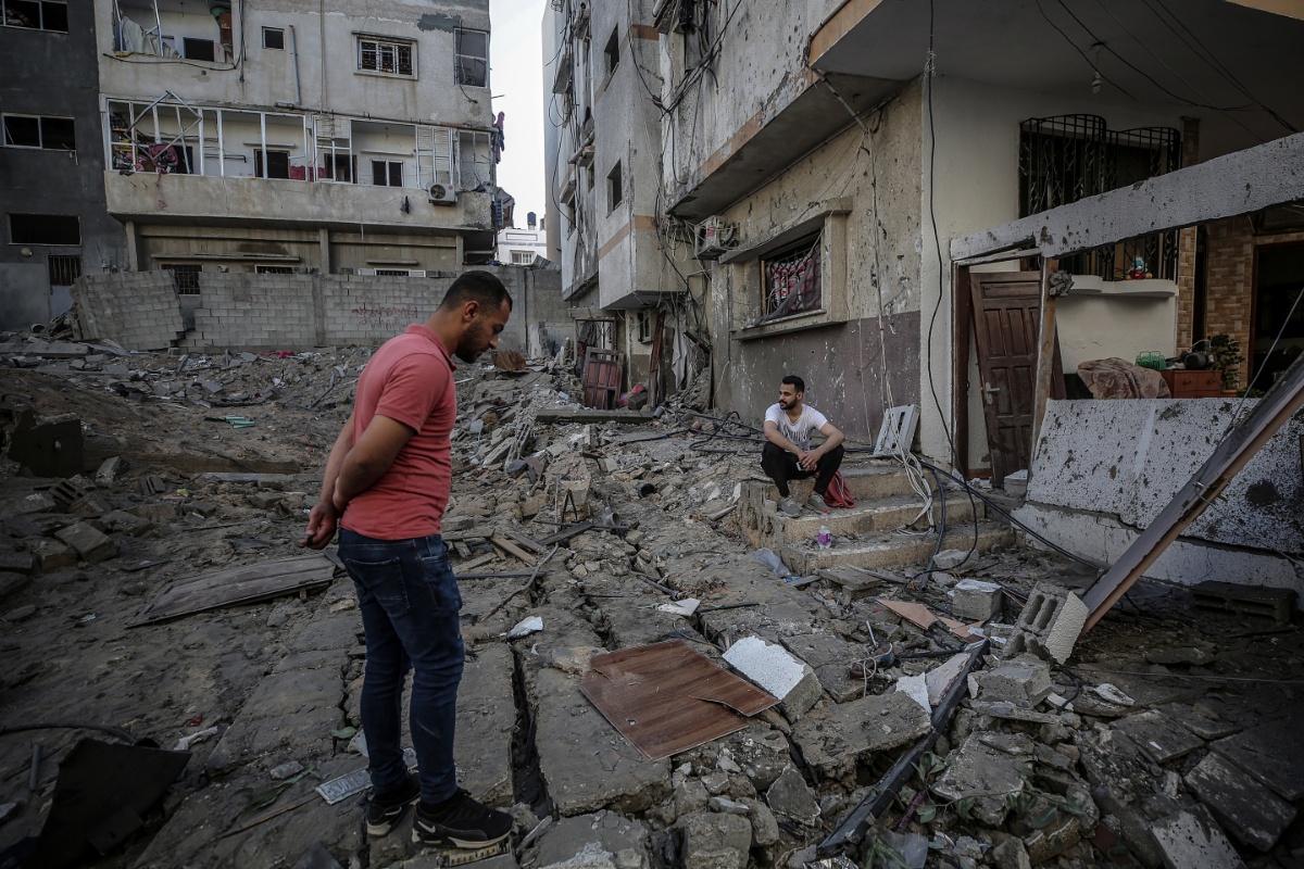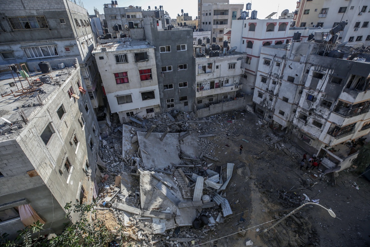 当地时间2021年5月13日,加沙地带,当地遭以色列空袭,房屋受损严重。