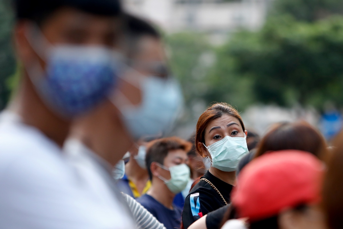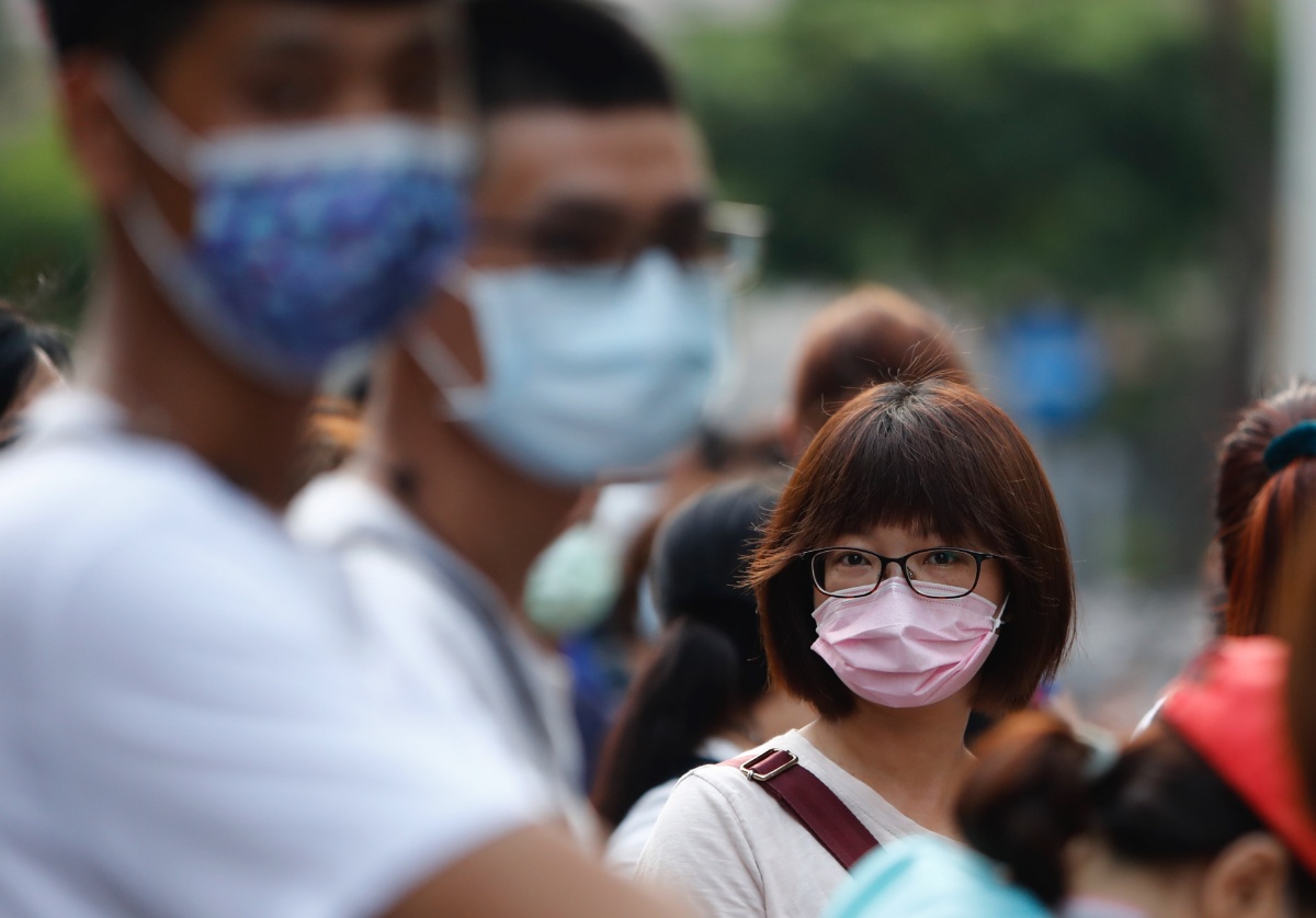 台湾单日暴增180例本土病例 市民快筛站外等待核酸检测
