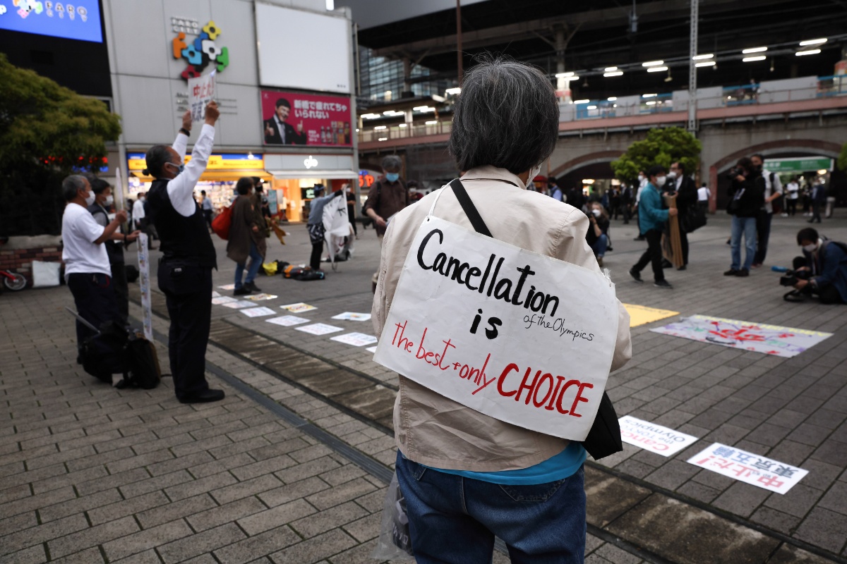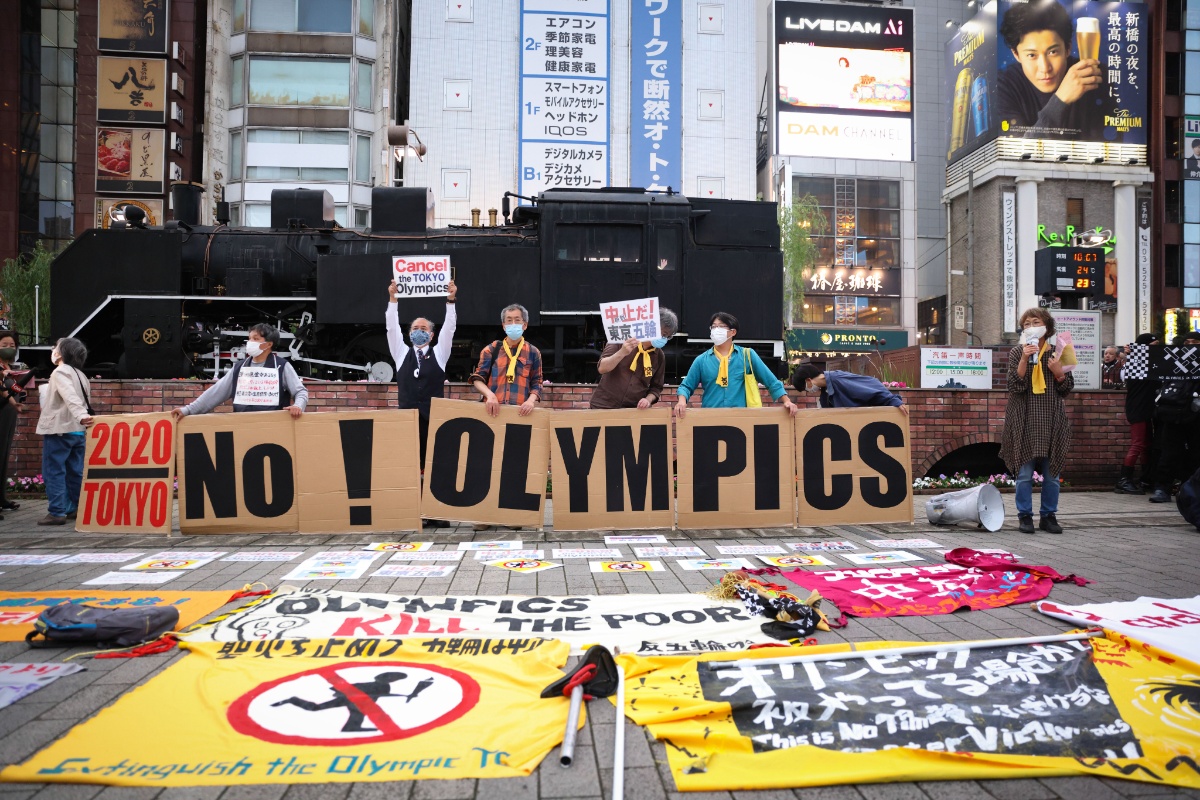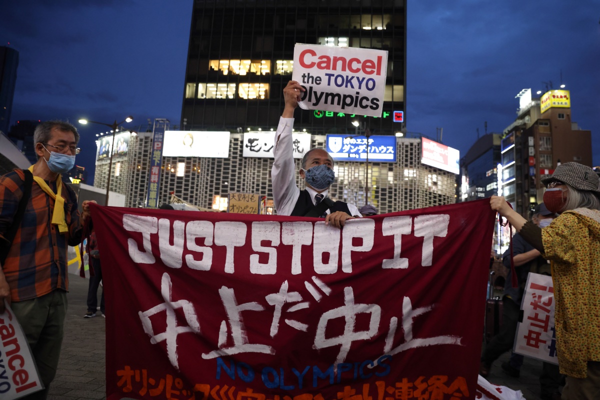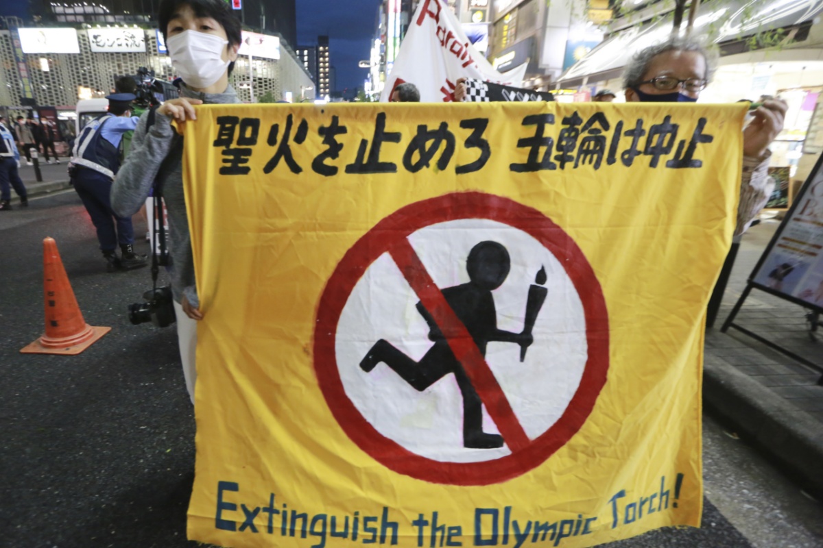 反对声音持续 东京部分民众手举标语抗议举办东京奥运会