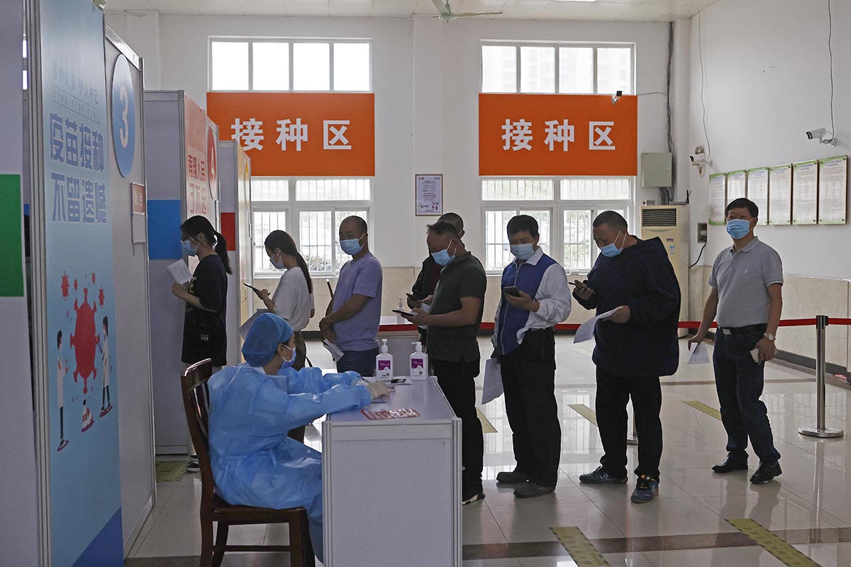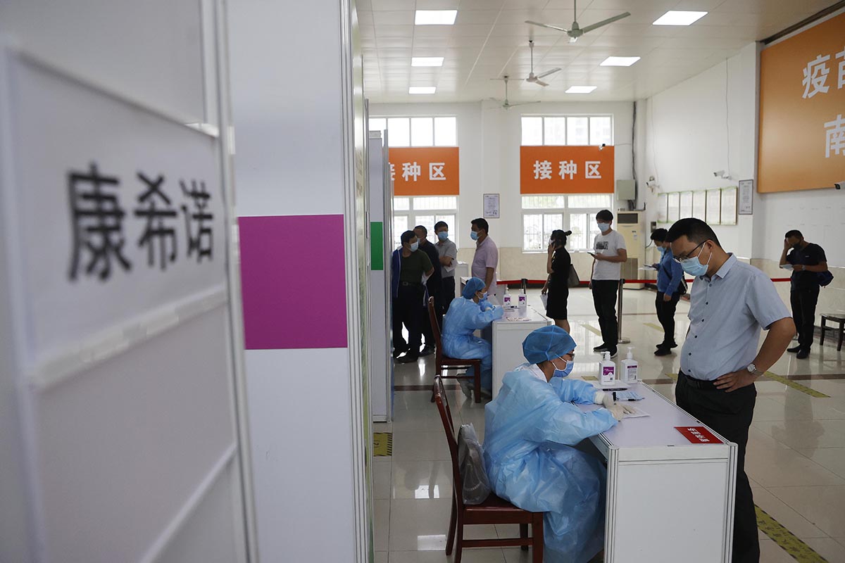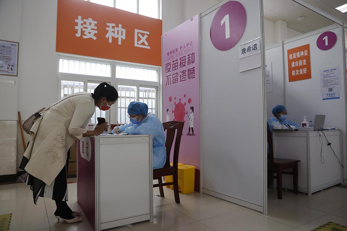 2021年5月18日,市民在嘉定区静华会所临时接种点有序接种腺病毒载体新冠疫苗。记者从上海市疾控中心获悉,近日上海市各区已陆续开始供应该疫苗。