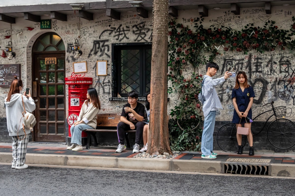 “520”网络情人节 情侣上海甜爱路打卡留念