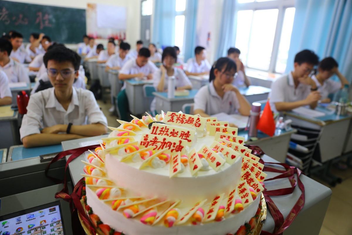 把同学名字写到“红包+蛋糕”上 班主任为考生送祝福