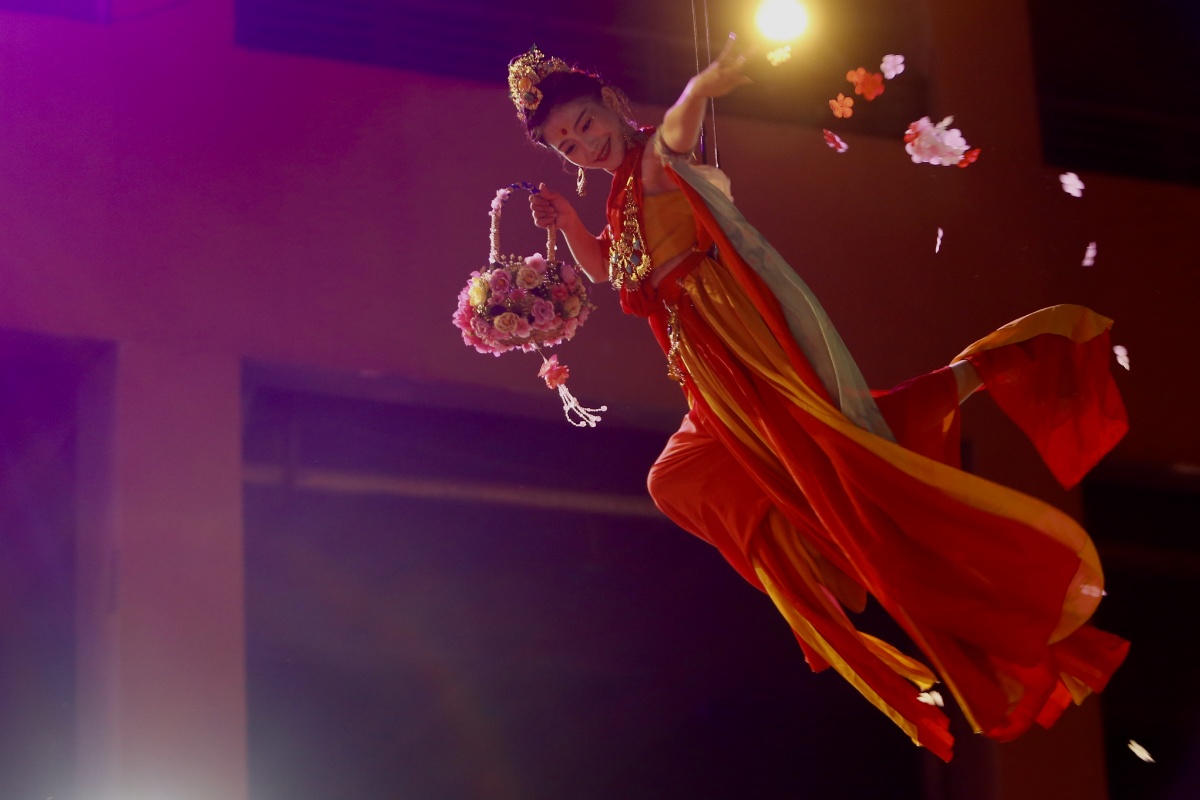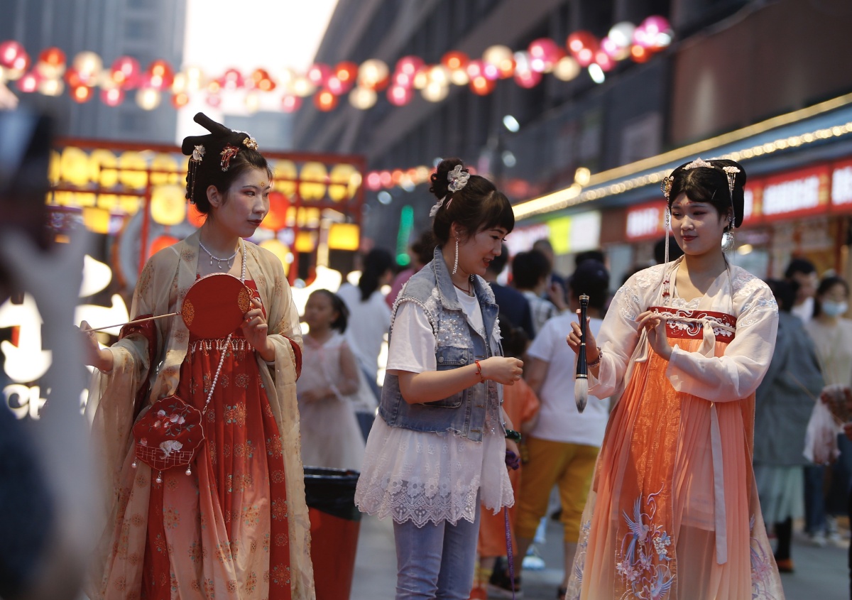 2021年6月11日,沈阳市首个唐风主题夜市“长乐街”人气火爆。喜爱唐装汉服的市民,乔装打扮走在一起仿佛穿越一般。精彩的飞天舞表演吸引了众多市民前来欣赏。让你身临其境感受大唐盛世。