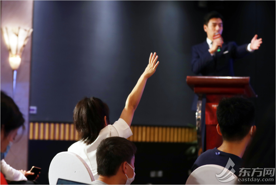 媒体记者向台上的评委们举手提问。