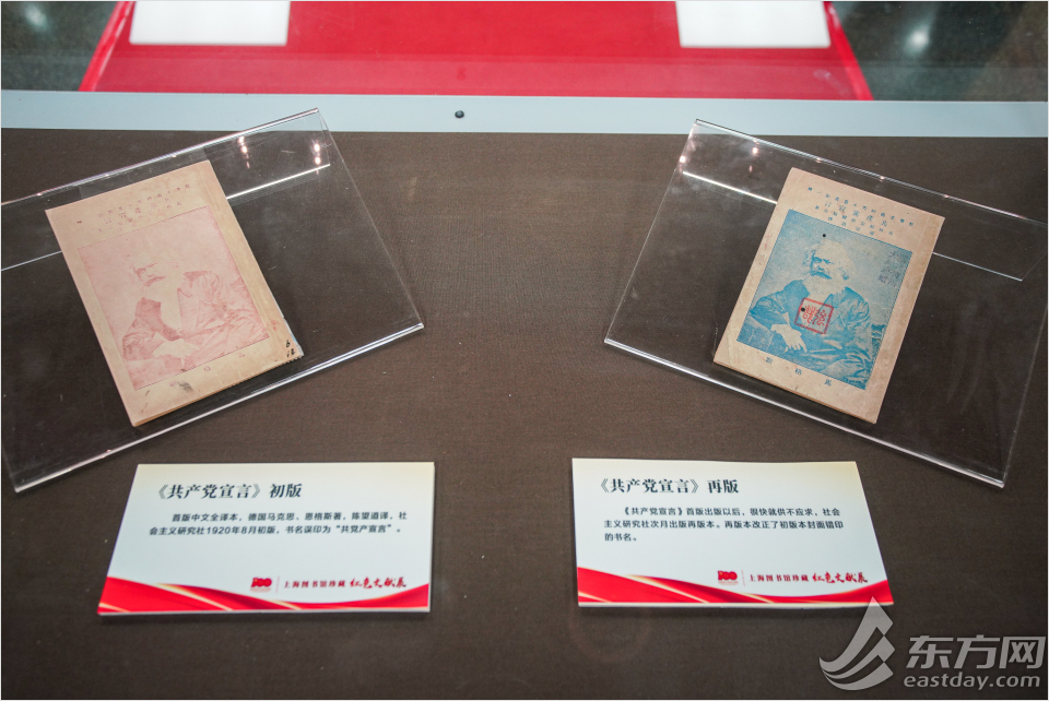 上海图书馆是全国少数几个设有革命历史文献专藏的公共图书馆之一。早在1949年以前,以老馆长顾廷龙先生为代表的有识之士,在白色恐怖的环境下,积极搜集、保存了一大批革命(红色)文献。1949年以后,上海图书馆继续大力征集、收藏革命文献图为《共产党宣言》初版(图左)与《共产党宣言》再版(图右)。值得一提的是,书名误印为“共党产宣言”的1920年8月初版《共产党宣言》目前已知的国内收藏仅12本。